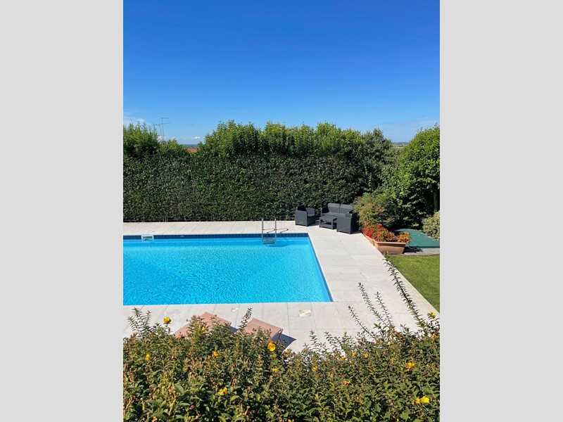 La piscina, incastonata nel giardino con vista sul parco, aggiunge un tocco di esclusività e benessere, rendendo questa dimora un'oasi privata di charme e tranquillità.