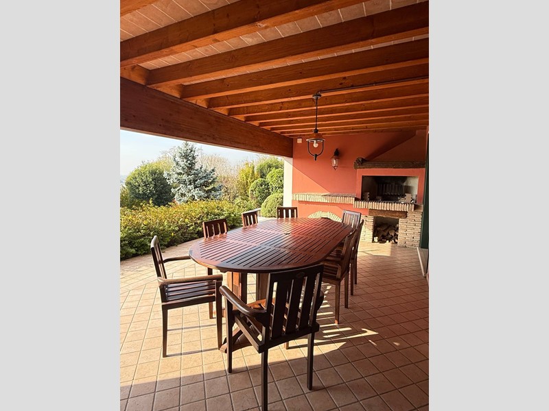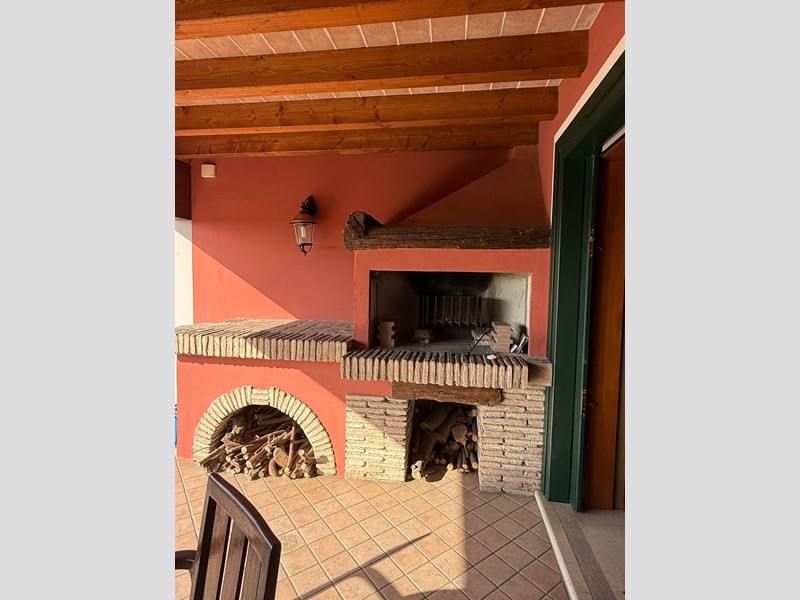 Un portico scenografico, arricchito da un camino in muratura, diventa un'estensione naturale della zona giorno, perfetta per pranzi all'aperto, cene estive e momenti di quiete assoluta.
