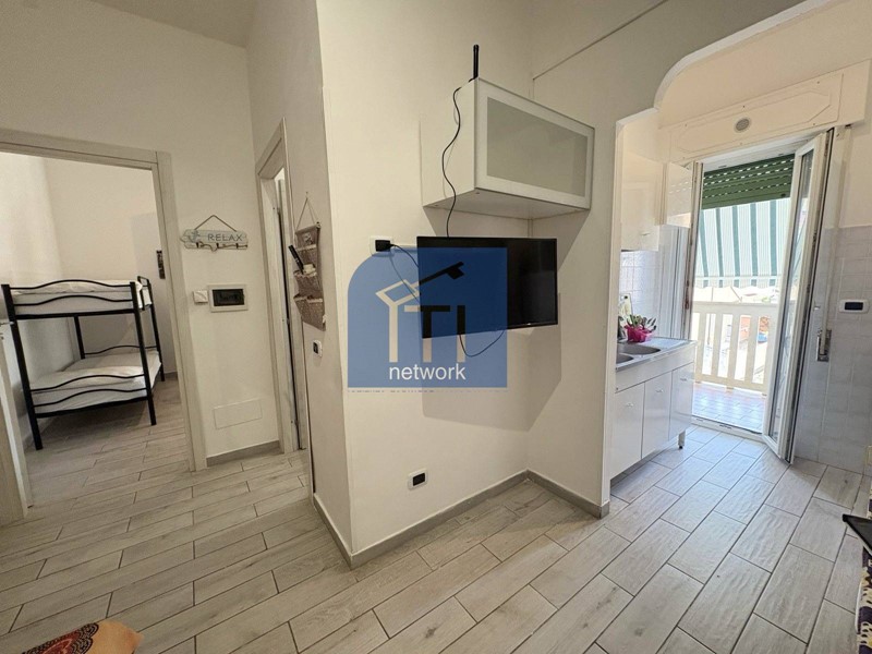 Torvaianica, a 100 mt dal mare, appartamento finemente ristrutturato e sito al primo piano di una palazzina in cortina. L'immobile è composto da salone con angolo cottura ed uscita al balcone vivibile, camera matrimoniale anch'essa con uscita al balcone e servizio finestrato. Completa la proprietà una cantina.