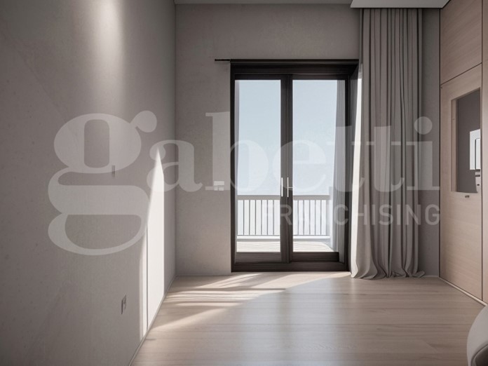 L'appartamento vanta un ampio balcone accessibile sia dal soggiorno che dalla cucina, ideale per vivere momenti conviviali all'aperto e godere della vista circostante.