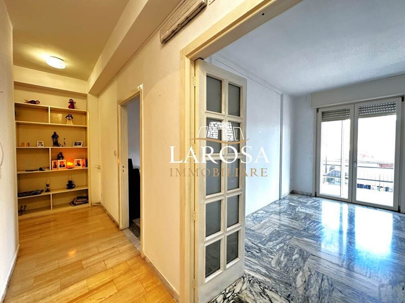 L’ingresso dell’abitazione accoglie gli ospiti in un ambiente ampio e confortevole, che introduce al salone doppio, caratterizzato da grandi aperture che garantiscono un’ottima luminosità naturale. Il soggiorno, arricchito da elementi eleganti e dalla presenza di un grande balcone, rappresenta il cuore della casa, ideale per momenti di relax, convivialità e per ammirare il dinamico panorama del centro cittadino.