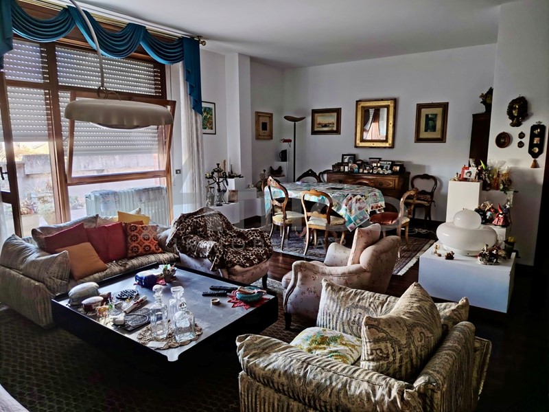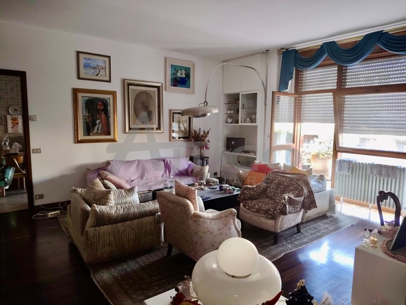 Centralissimo - spazioso APPARTAMENTO al P. 3 ° (con ascensore) composto da : ingresso in soggiorno ampio di oltre 40 mq., cucina abitabile, 3 camere letto (2 matrimoniali +1 singola ampia), 2 bagni, terrazza abitabile, poggiolo con veranda, soffitta e garage. Caldaia recente e riscaldamento autonomo.