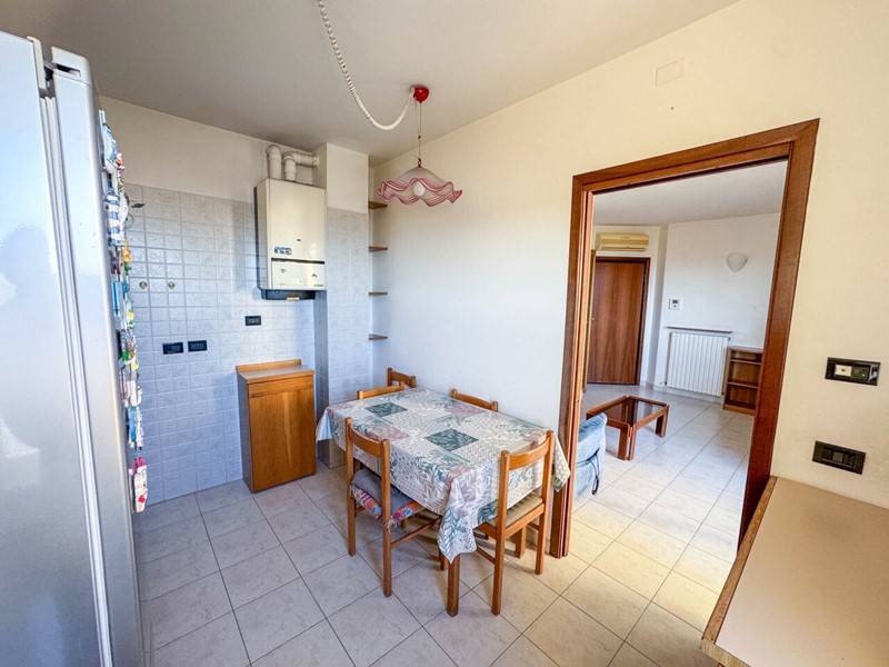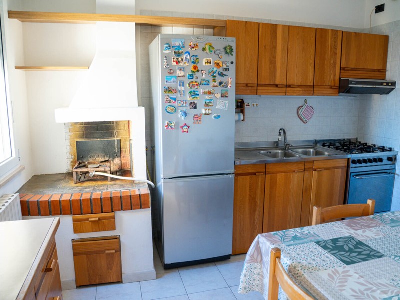 L'appartamento di circa 70mq calpestabili ha accesso sulla zona giorno di ampie dimensioni, servita dal primo terrazzo loggiato che condivide con la camera singola. La cucina, separata, è dotata di un comodo camino e offre uno spazio capiente per ospitare un tavolo da quattro persone. La parete che separa la zona giorno dalla cucina non essendo portante può essere abbattuta in modo da creare un enorme open space. Accedendo dal corridoio troviamo i due bagni, uno piccolo cieco di servizio con box doccia e lavatrice, mentre quello principale finestrato è dotato di una comoda vasca. La zona notte offre una camera singola di 10mq e una spaziosa camera matrimoniale dotata di un magnifico terrazzo loggiato di ampie dimensioni che vede il mare. La casa è in ottime condizioni ed è dotata di aria condizionata, finestre moderne in doppio vetro camera e gli impianti a norma, il tutto per renderla pronta per essere vissuta.