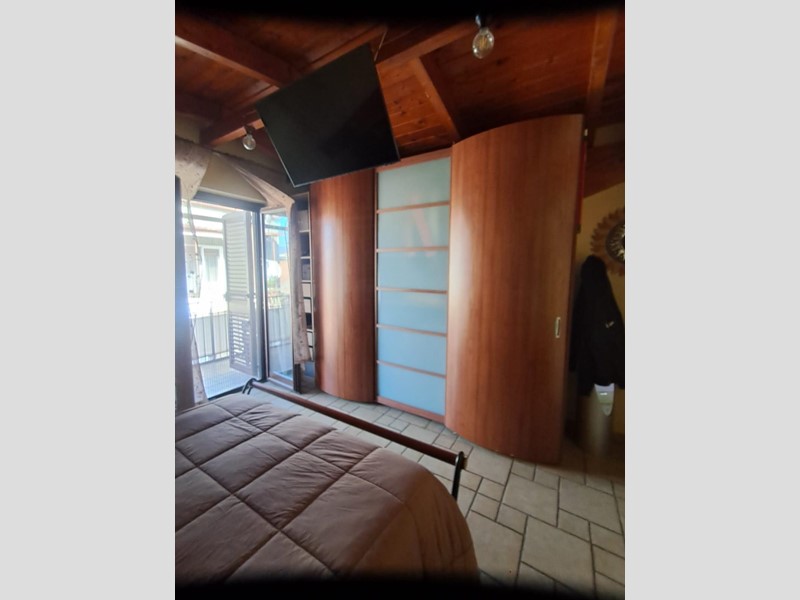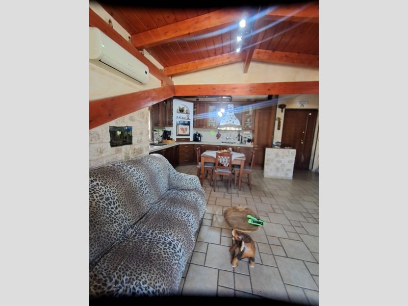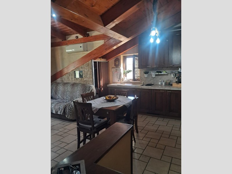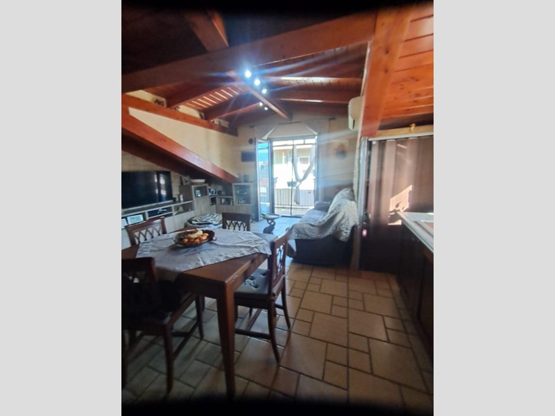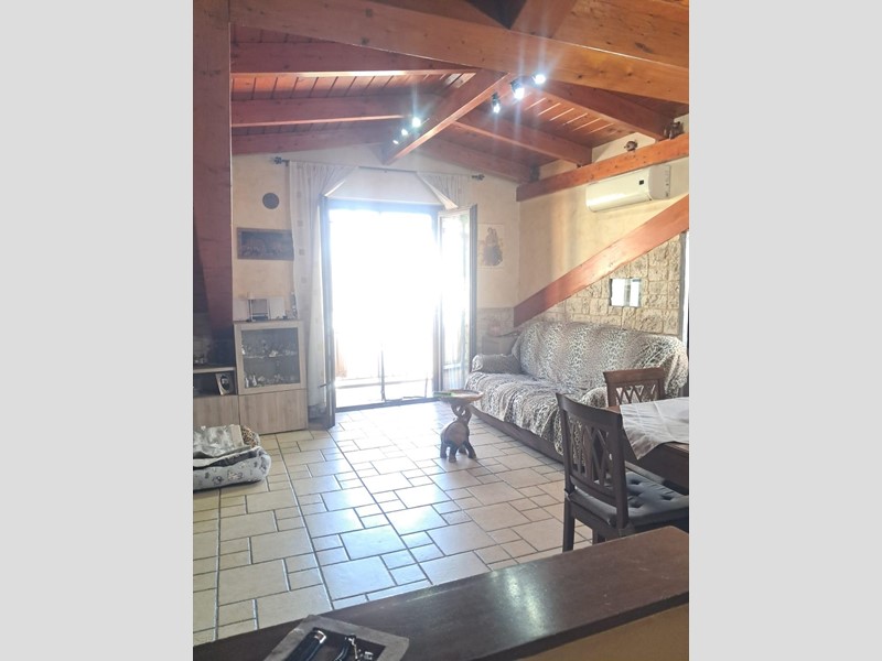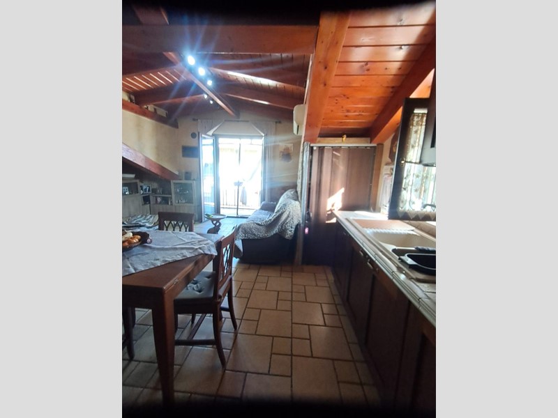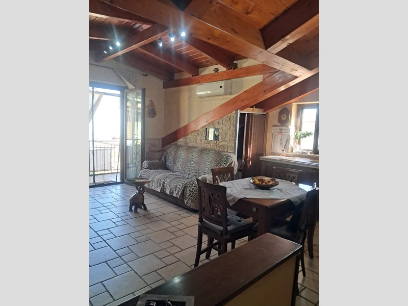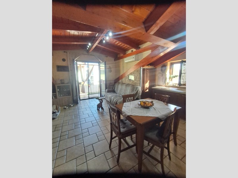 L''immobile si compone di 4 locali, con una superficie di circa 80 mq: ingresso in AMPIO SOGGIORNO con angolo cucina e ripostiglio e accesso diretto ad un balcone coperto; tramite corridoio si accede al reparto notte dove si trovano due camerine singole di cui una con soppalco, bagno con doccia e una camera matrimoniale con balcone. Il tutto caratterizzato da soffitti con travi a vista in stile mansarda.