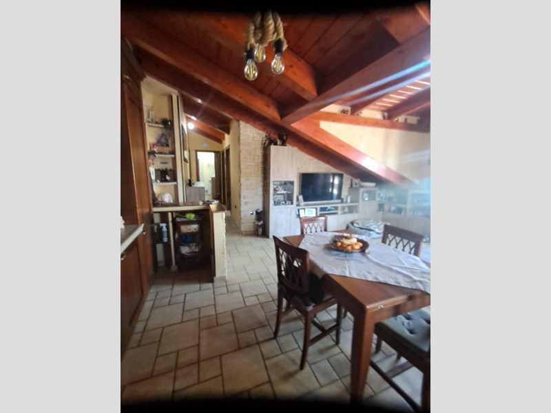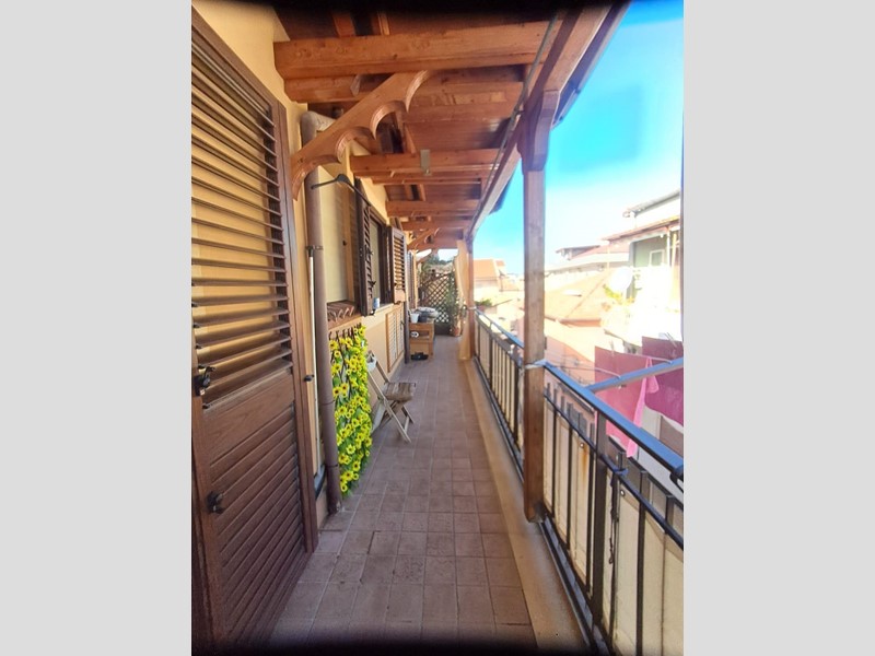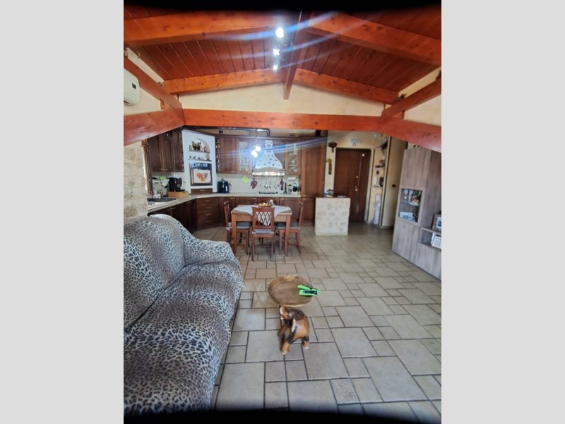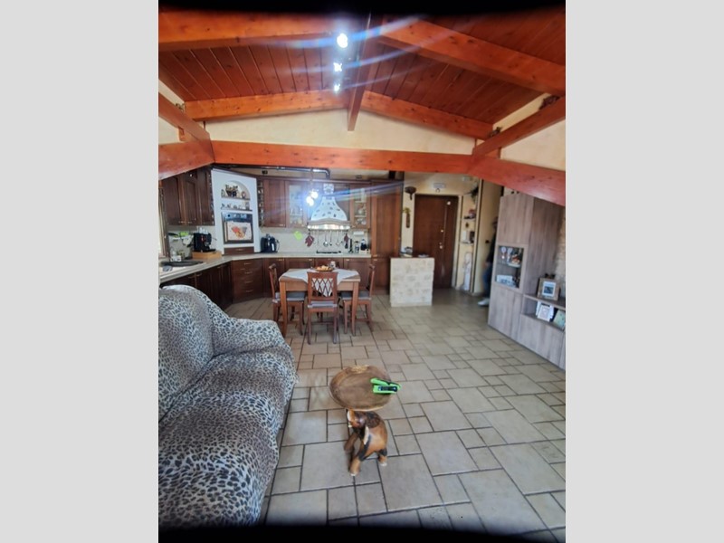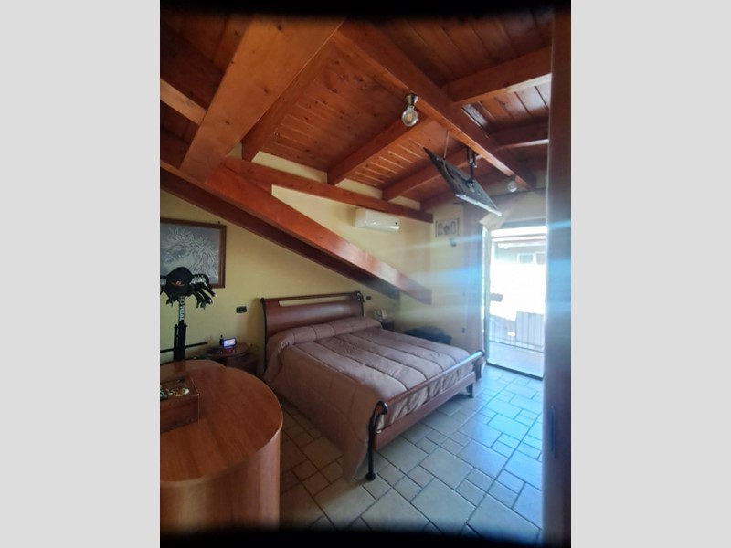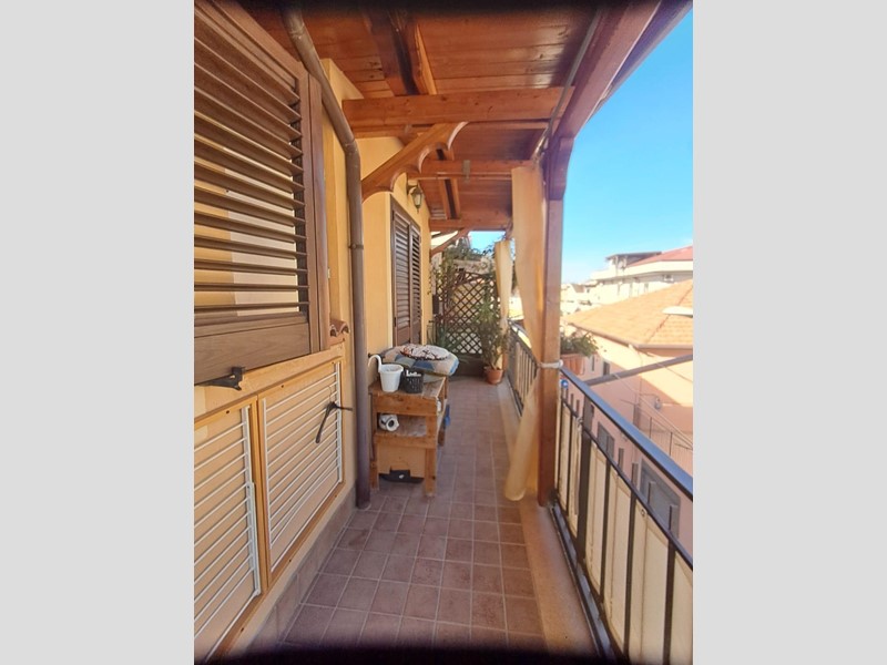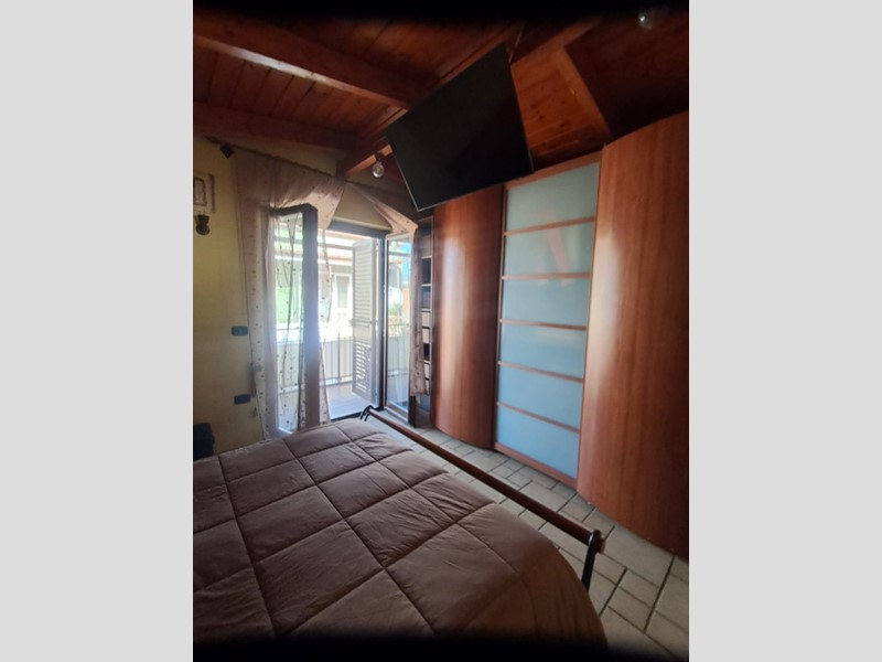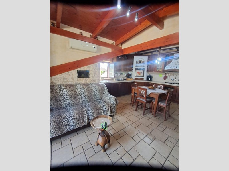 L''immobile si compone di 4 locali, con una superficie di circa 80 mq: ingresso in AMPIO SOGGIORNO con angolo cucina e ripostiglio e accesso diretto ad un balcone coperto; tramite corridoio si accede al reparto notte dove si trovano due camerine singole di cui una con soppalco, bagno con doccia e una camera matrimoniale con balcone. Il tutto caratterizzato da soffitti con travi a vista in stile mansarda.