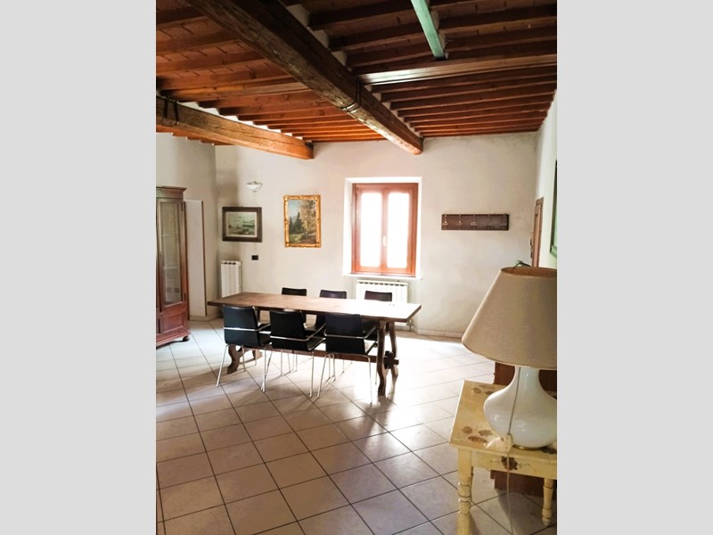 Nel cuore del centro storico, si propone un appartamento di circa 106 mq, collocato al primo piano di un edificio. Gli spazi interni includono un ampio soggiorno con zona pranzo, un cucinotto, una camera matrimoniale, una camera singola e un bagno dotato di doccia e finestra. A completare l'offerta, una terrazza panoramica offre una vista sulla valle, insieme a un locale di sgombero, accessibile tramite scala interna o dall'esterno, situato al piano terra.