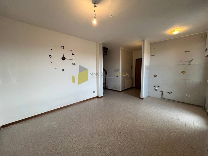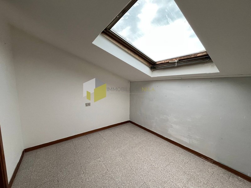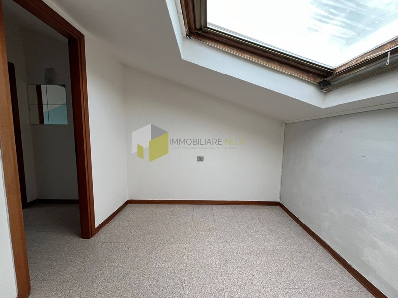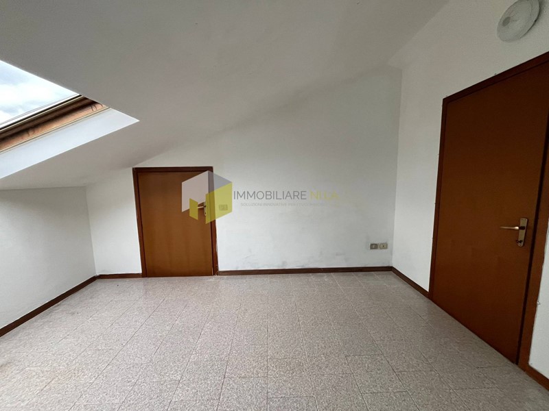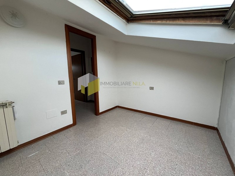 L'ingresso conduce alla zona giorno con angolo cottura servita da un comodissimo balcone e al bagno con doccia ed aspiratore. Attraverso la scala a chiocciola si raggiunge il sottotetto, attualmente adibito a zona notte con un locale utilizzato a camera, uno a studio o cameretta con accesso alla stupenda terrazza a tasca e uno a bagno con finestra.