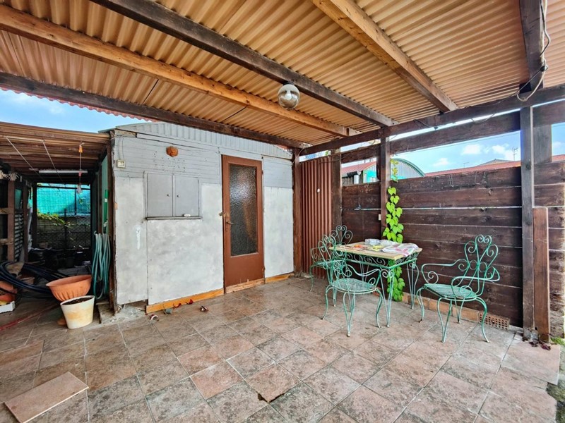 All’esterno, un resede privato di circa 50 mq offre uno spazio ideale per rilassarsi all’aperto, dal quale si accede direttamente al garage di proprietà, situato nella corte interna.