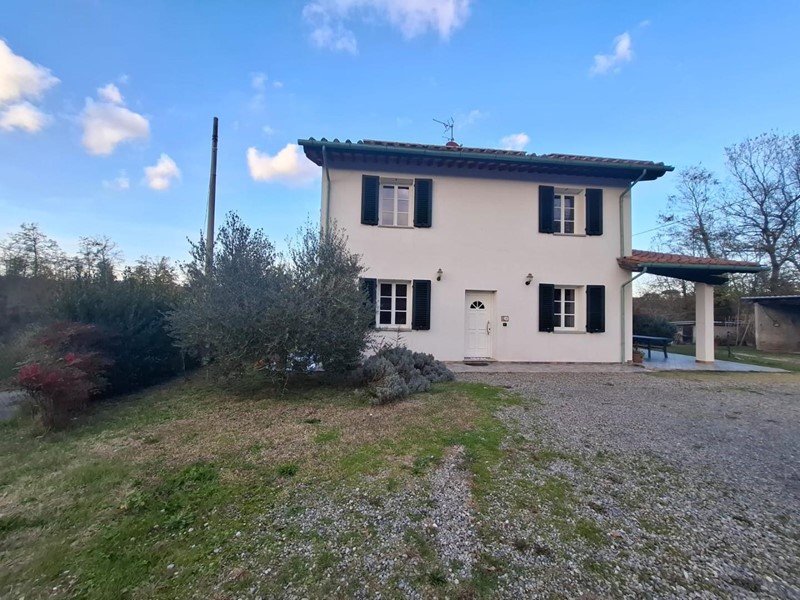 Tuffata nelle campagne di Fucecchio, arricchita da un ampio loggiato e circondata da una proprietà di circa 3 ettari, è proposta la vendita di una villa libera su quattro lati distribuita su due livelli. La residenza, di recente costruzione, è così composta: al piano terra, ingresso su zona living/pranzo, cucina, disimpegno, studio, bagno e secondo soggiorno con camino. Dalla zona living si apre il vano scale che conduce al primo piano dove si sviluppano tre camere da letto matrimoniali, due servizi igienici e una stanza pluriuso o guardaroba. Le finiture sono di alto livello. Si precisa che l'indirizzo non identifica l'ubicazione esatta dell'immobile, ai fini della riservatezza del proprietario. Euro 460.000. Rif.1314