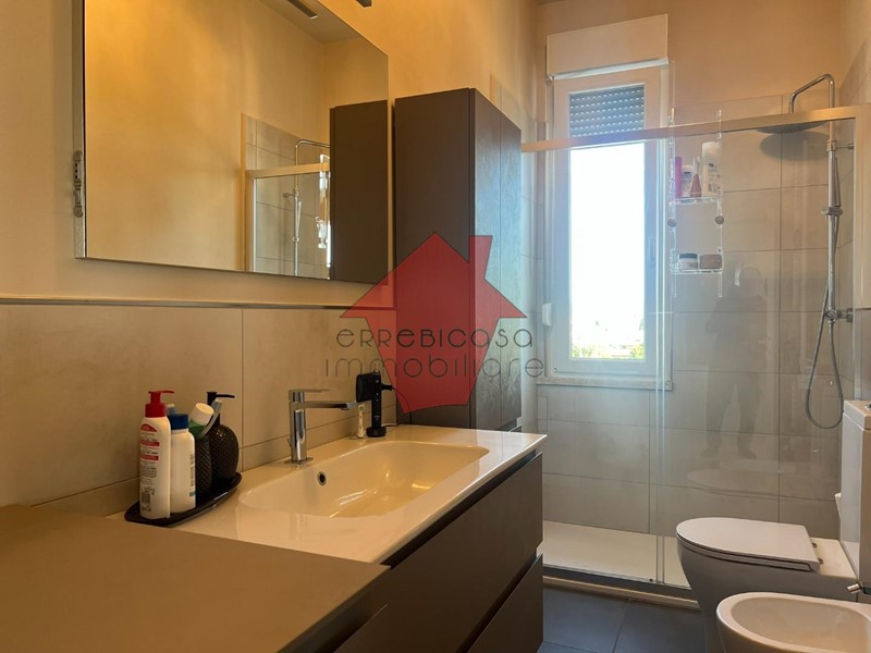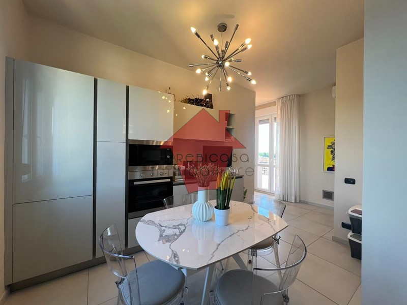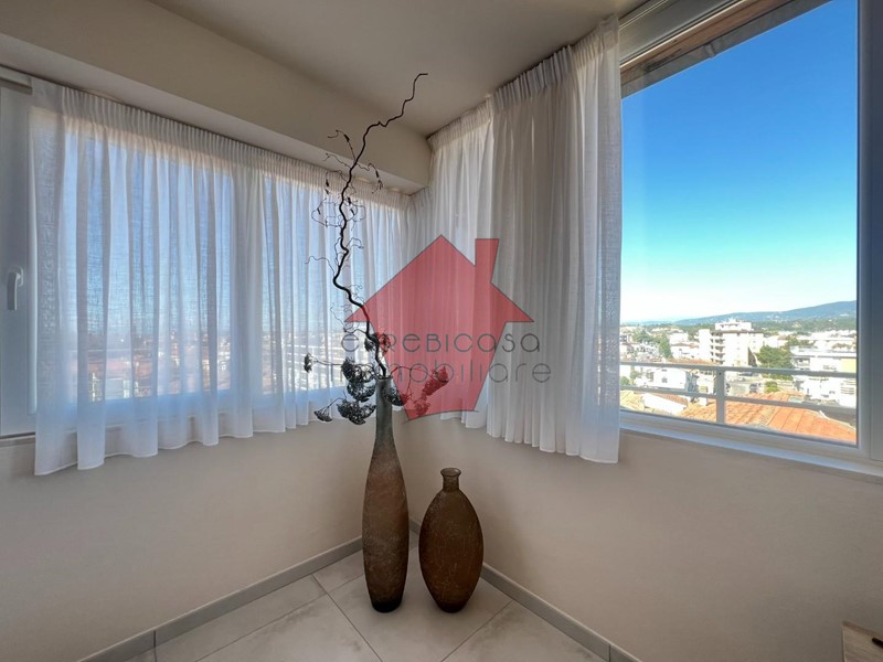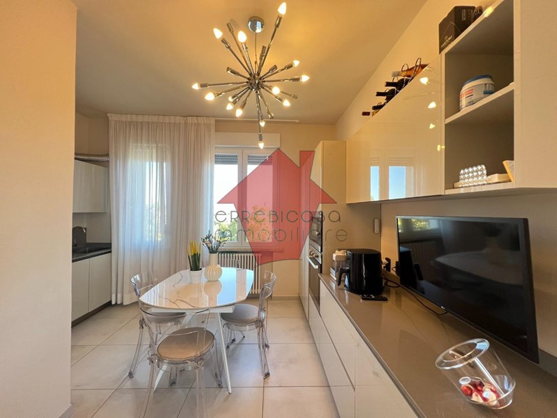 La sua composizione: ingresso/disimpegno, vano cottura e pranzo, oltre locale soggiorno informale completamente separato e contornato di pareti vetrate panoramiche, bagno e due camere da letto ampie. L'appartamento è anch'esso completamente ristrutturato e dotato di tutti i comfort, grazie agli impianti nuovi, alla presenza dell'aria condizionata, e agli ottimi infissi ad abbattimento acustico e termico, che conferiscono alla casa non solo un ottimo isolamento ma anche un'estetica moderna e sobria, che si sposa bene con un ambiente giovanile fresco, sapientemente arredato ultimato ed organizzato, infatti i materiali, i pavimenti, i rivestimenti risultano tutti di ottima qualità. Vera perla aggiunta e inimitabile la terrazza abitabile con tre diversi accessi; 80 mq di spazio esterno vivibile soleggiato e ben organizzato per pranzi, cene e momenti di relax unico, parzialmente coperta da pensilina con copertura elettronica retrattile e completa di illuminazione. Classe energetica A1; IPE 111,62. Euro 334.000,00
