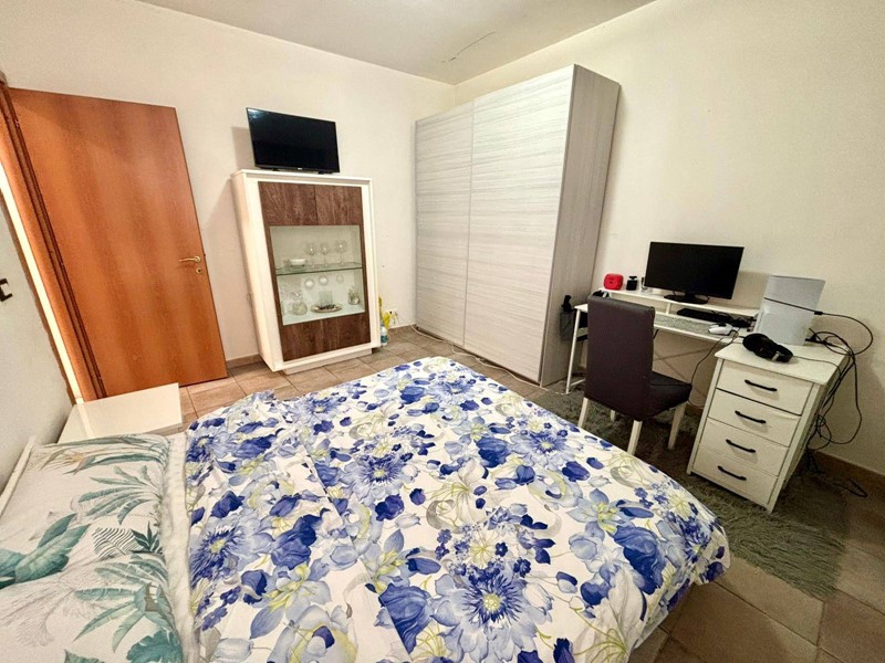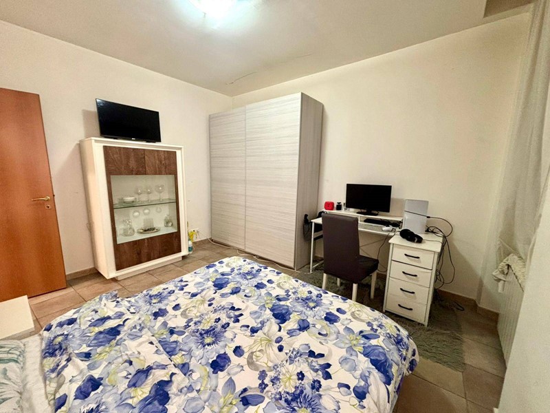 Ingresso su disimpegno, sala e cucina zona living, 2 camere da letto matrimoniali ampie, bagno finestrato con box doccia.