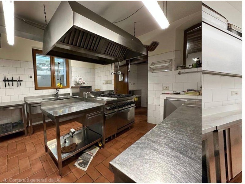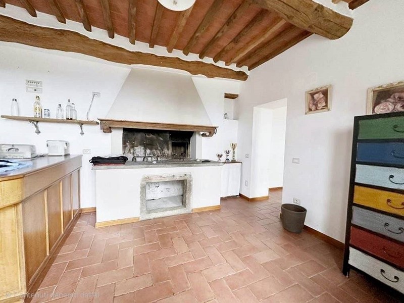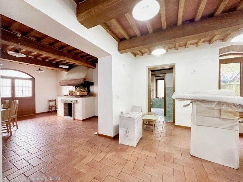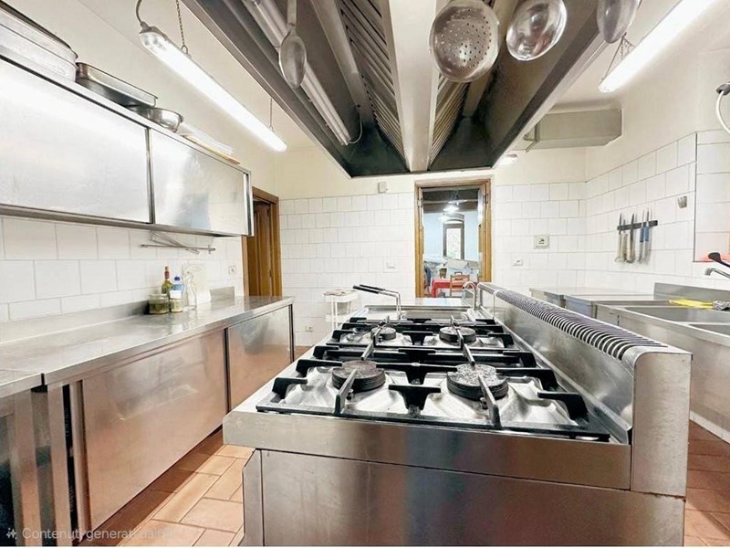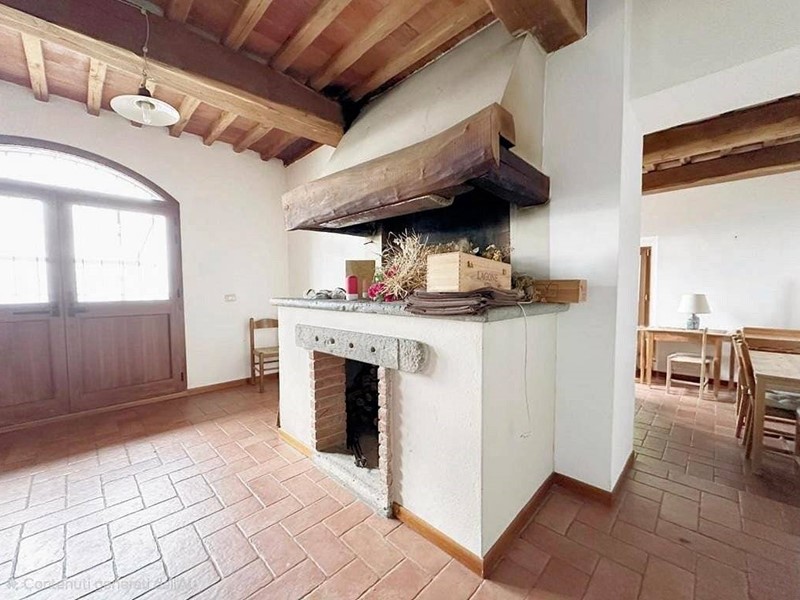 Attualmente il piano terra è sempre diviso come quando veniva esercitata lattività di agriturismo e quindi troviamo diverse sale e salette da pranzo alcune con camino e una anche con forno a legna,