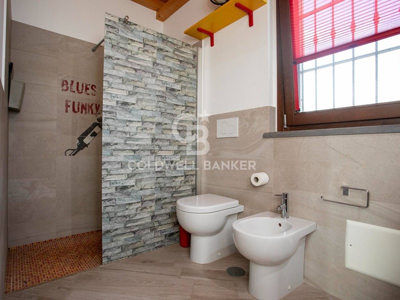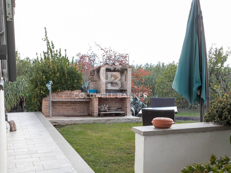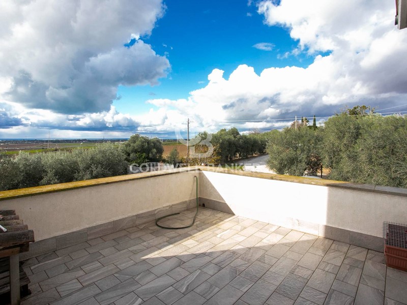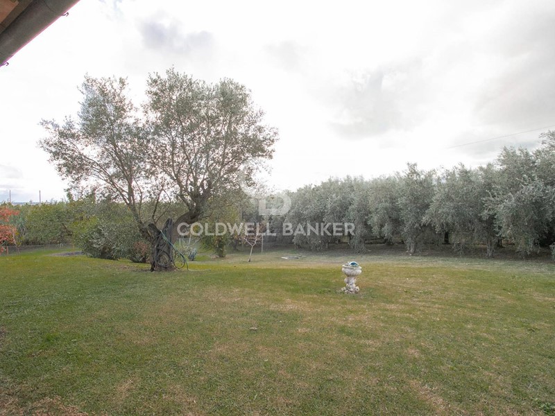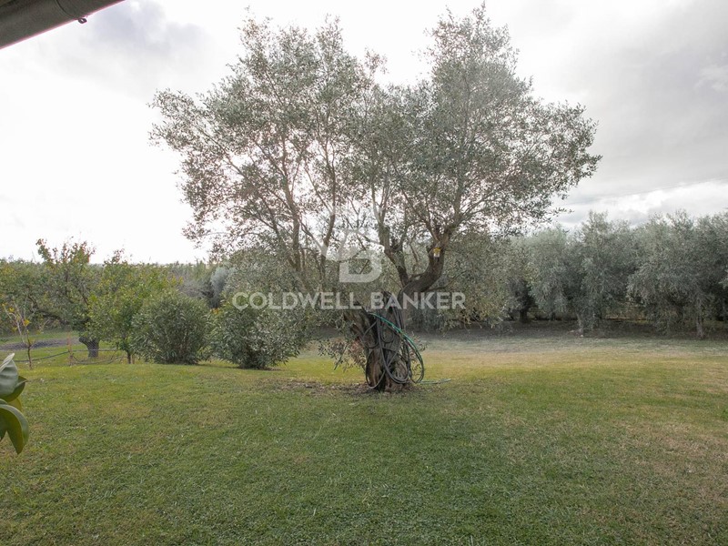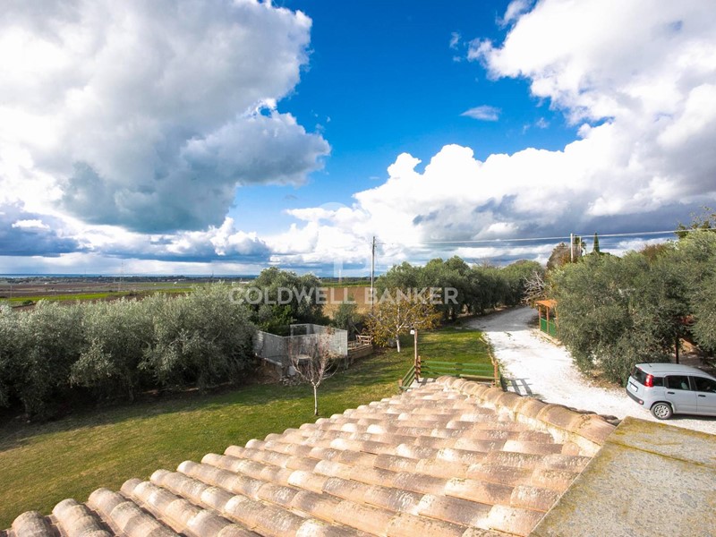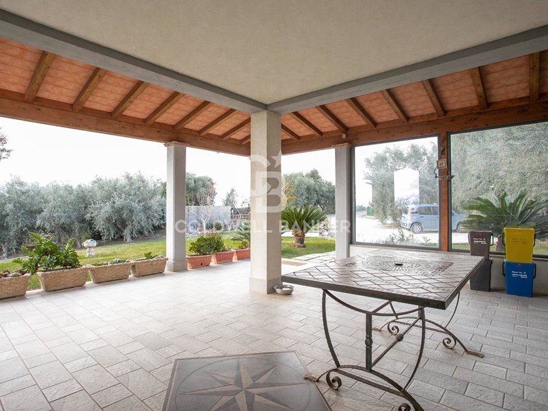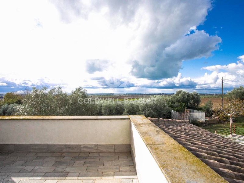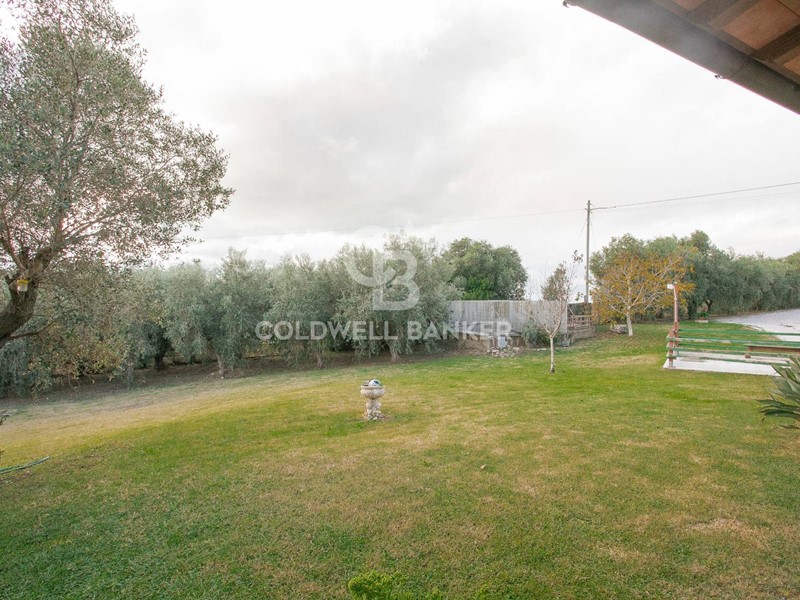 Libera su quattro lati, la proprietà è circondata da un giardino curato con amore: ulivi, alberi da frutto e piante ornamentali disegnano un paesaggio verde, completamente recintato, illuminato e dotato di impianto irriguo. Varcando il cancello carrabile, il portico ampio e accogliente invita a vivere momenti di relax allaria aperta, tra cene estive e tramonti suggestivi.