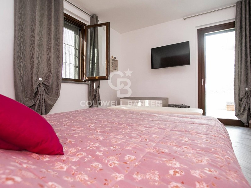 Allinterno, gli spazi raccontano una storia di qualità e funzionalità: al piano terra un luminoso soggiorno, una cucina abitabile separata, una camera da letto, un bagno con doccia e una taverna con camino, perfetta per le serate in compagnia. Salendo la scala in legno, il primo piano si apre su due camere matrimoniali, entrambe con bagno en suite e accesso alla terrazza panoramica, da cui lo sguardo spazia dallArcipelago Toscano ai Monti della Tolfa. Una delle camere dispone inoltre di una cabina armadio, trasformabile in terza stanza.