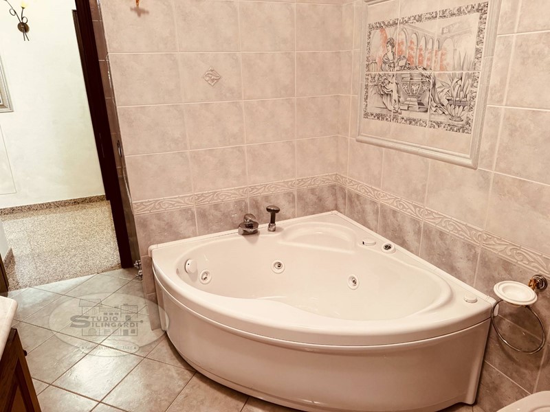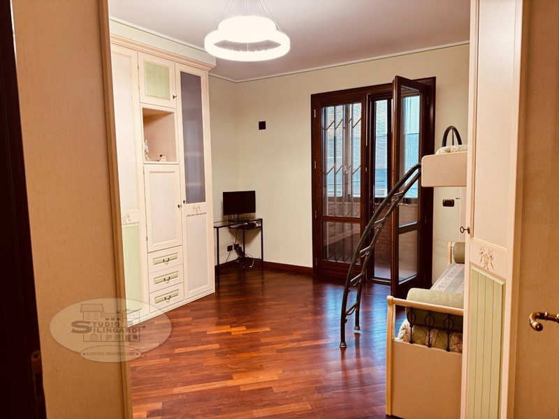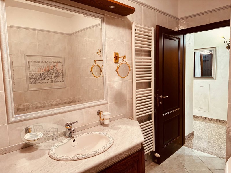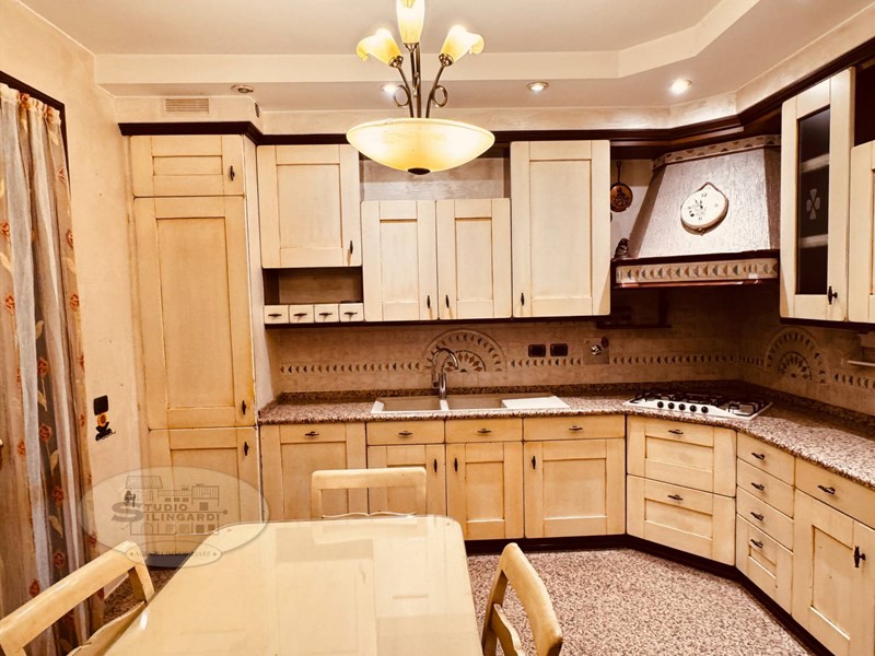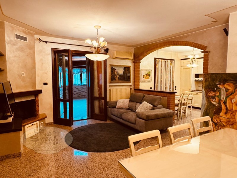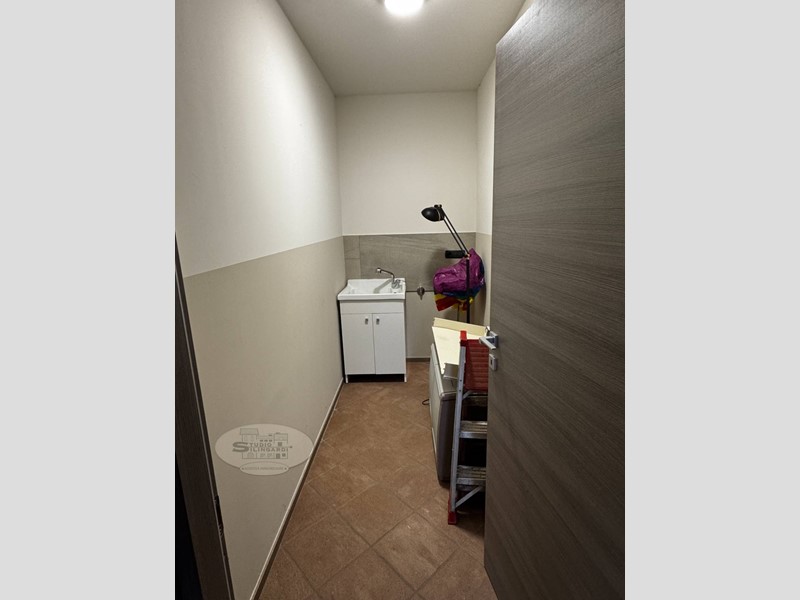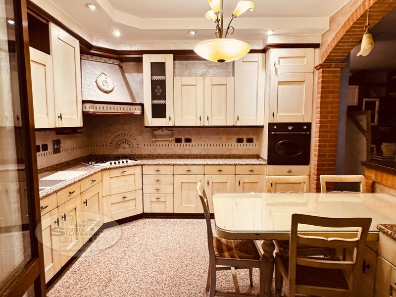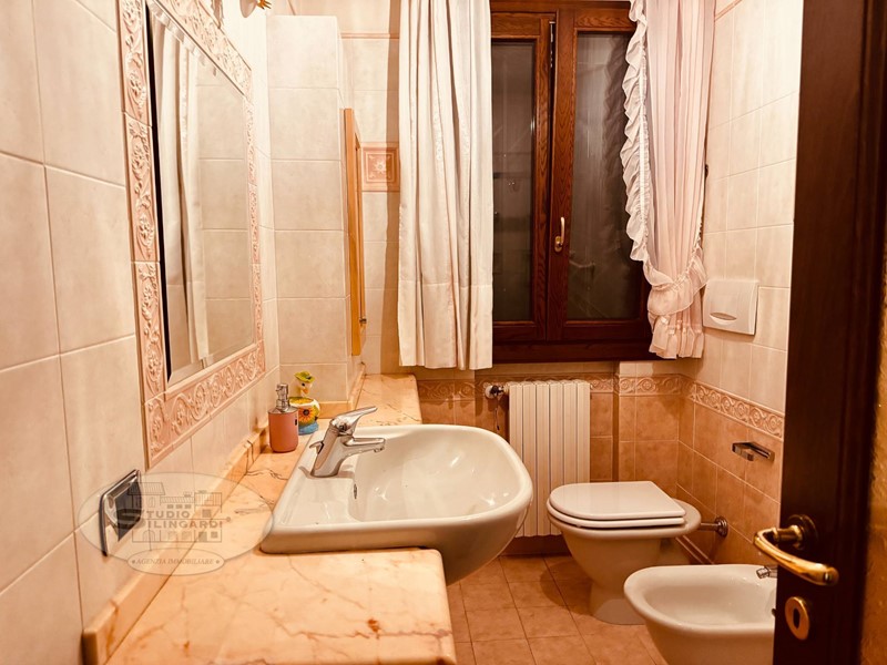 Appartamento al piano primo S/A , composto da: ingresso in pranzo soggiorno con angolo cucina , ampio terrazzo coperto , disimpegno notte , tre camere , due bagni , cabina armadi; al piano terra una cantina/lavanderia.
