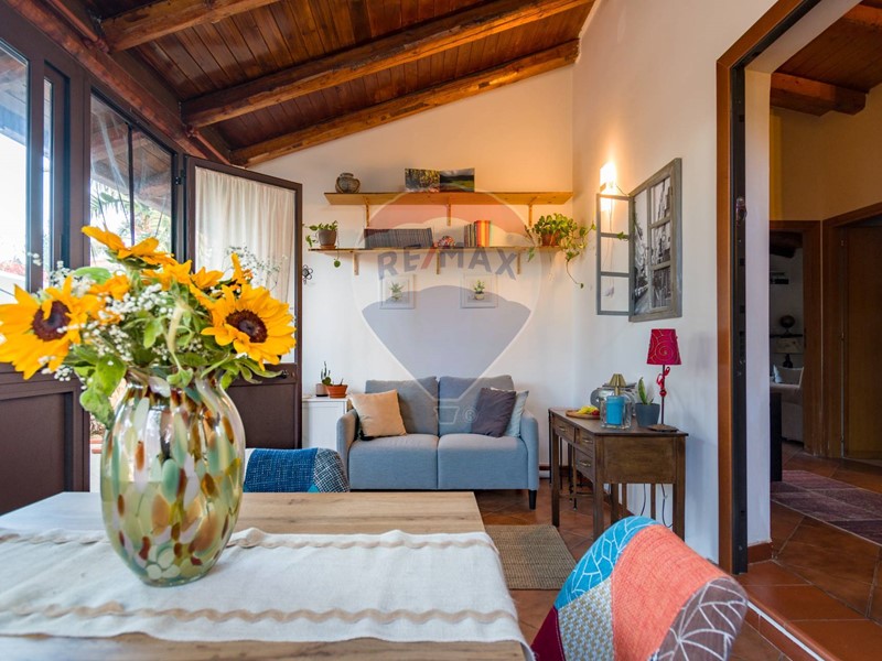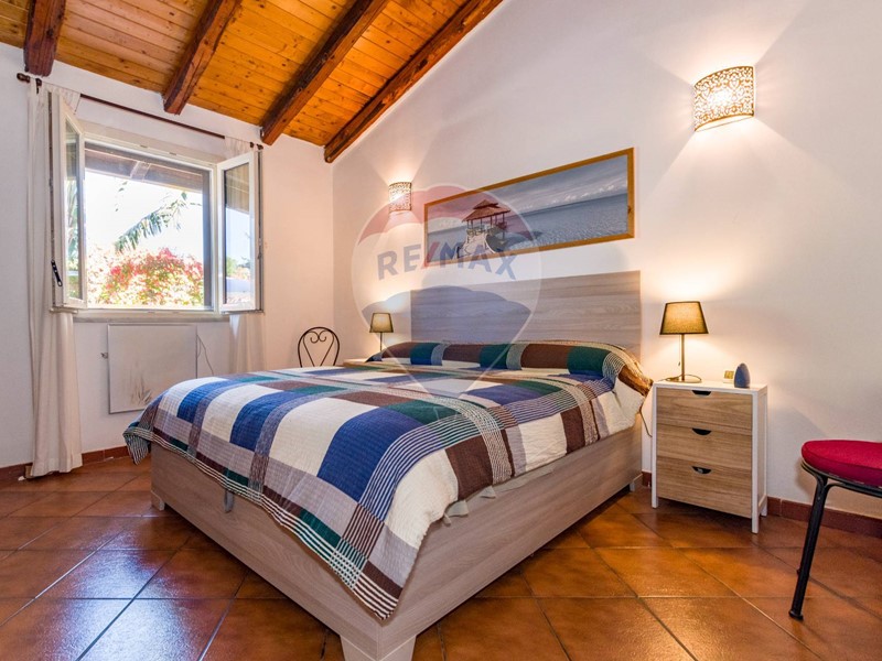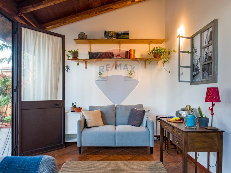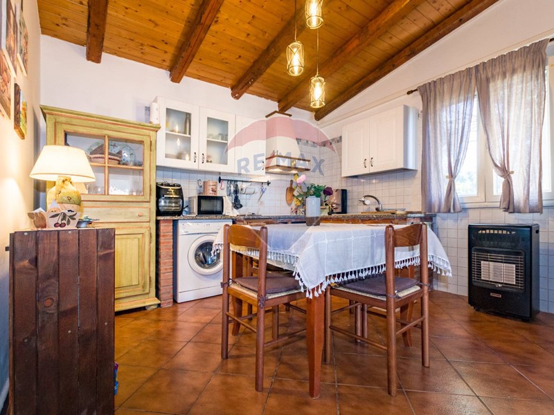 La villa in ottime condizioni, si sviluppa su una superficie di 64 mq commerciali, includendo un accogliente soggiorno verandato allingresso. Gli interni si aprono su un confortevole soggiorno con cucina a vista, moderno e funzionale, che si integra in modo armonioso con il resto degli ambienti. La zona notte comprende due camere ben proporzionate e luminose, mentre il bagno completa la distribuzione degli spazi. Le finestre assicurano uneccellente luminosità naturale e una piacevole circolazione dellaria. Limmobile è dotato di riscaldamento elettrico con pannelli radianti a infrarossi, impianto di climatizzazione, fibra per il collegamento internet, infissi in PVC con doppi vetri, che garantiscono un isolamento termico e acustico ottimale per ogni stagione. Completano le dotazioni la predisposizione per limpianto di riscaldamento a gas metano e limpianto dacqua dotato di cisterna di riserva. La struttura è del tipo intelaiata in c.a. con solai misti in lattero cemento, tamponamento esterno e tramezzatura in conci di tufo; Le pareti interne sono rivestite con intonaco civile e le pareti esterne sono rifinite con intonaco Li Vigni. La pavimentazione è in piastrelle di tipo cotto. Infine, L'iimobile è dotato di concessione edilizia, abitabilità e autorizzazione allo scarico.