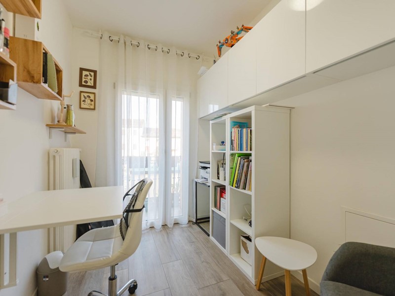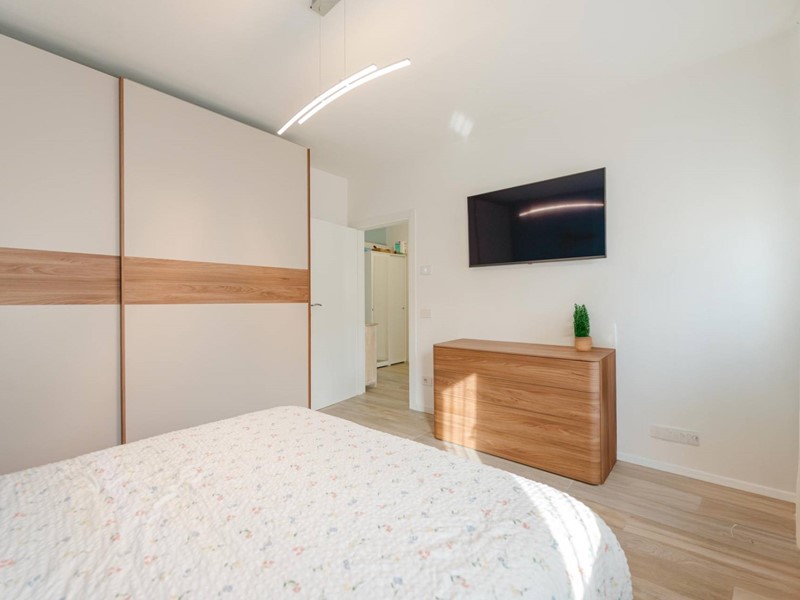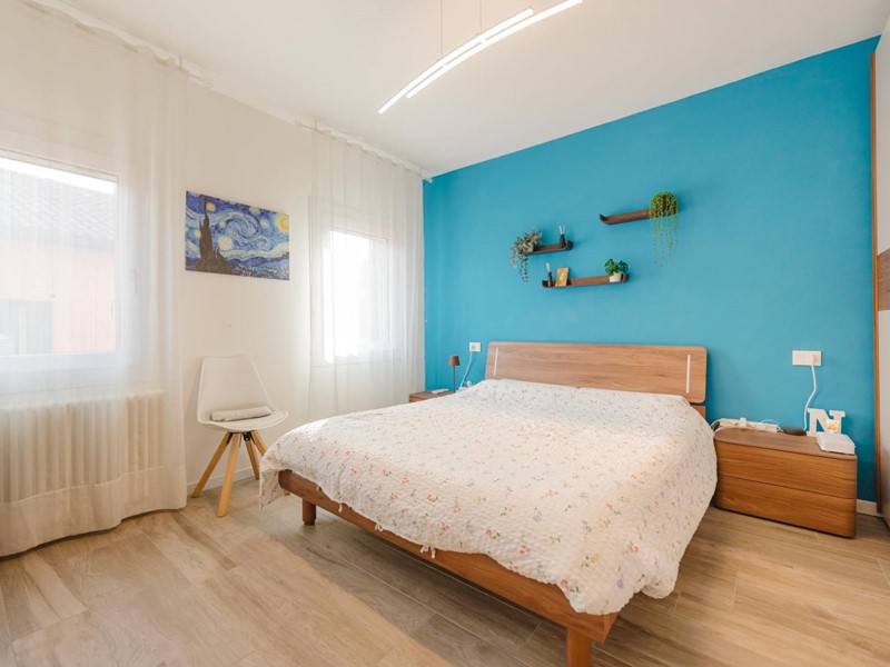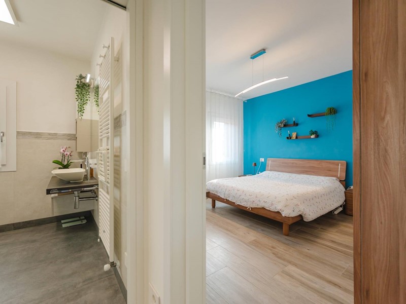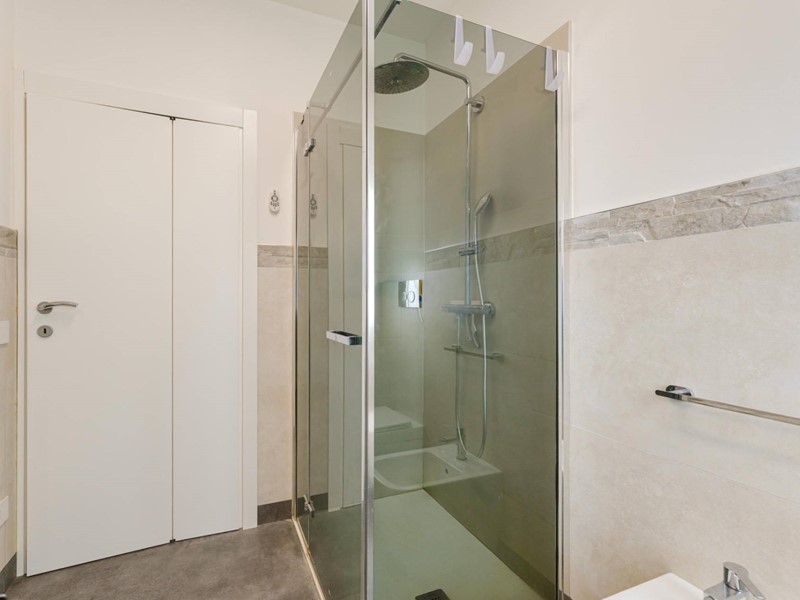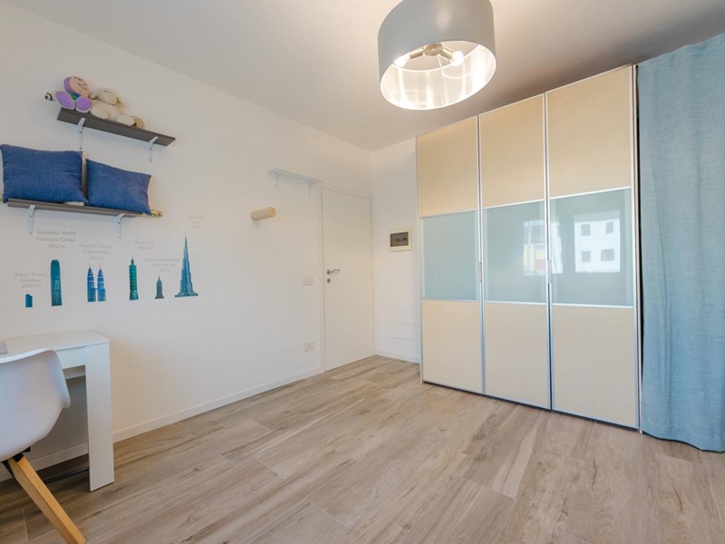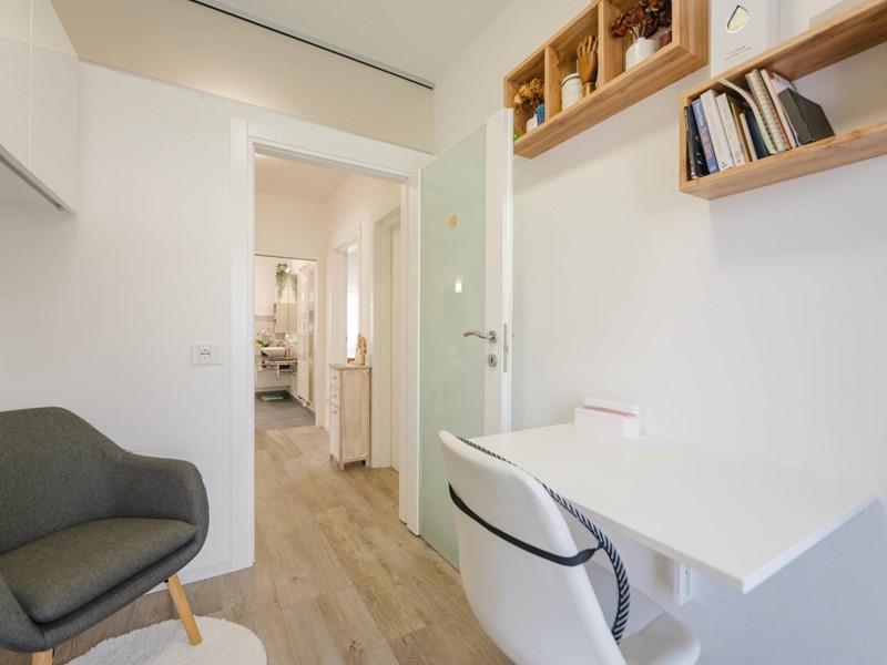 La zona notte ospita due camere matrimoniali, uno studiolo e un bagno con box doccia.