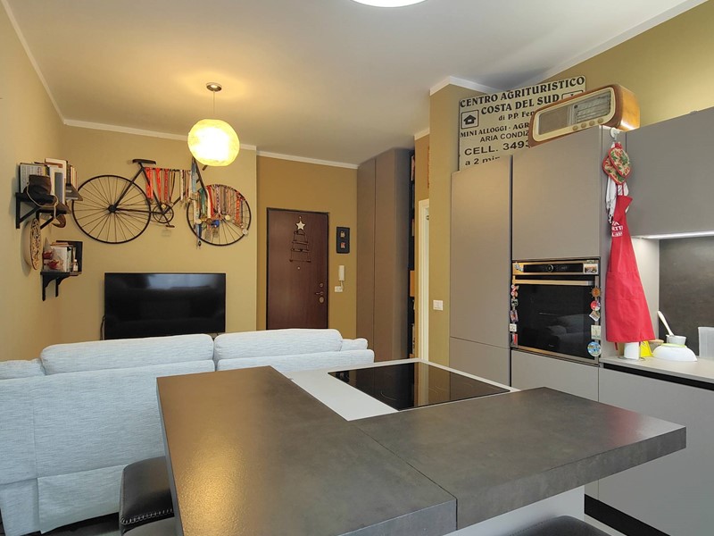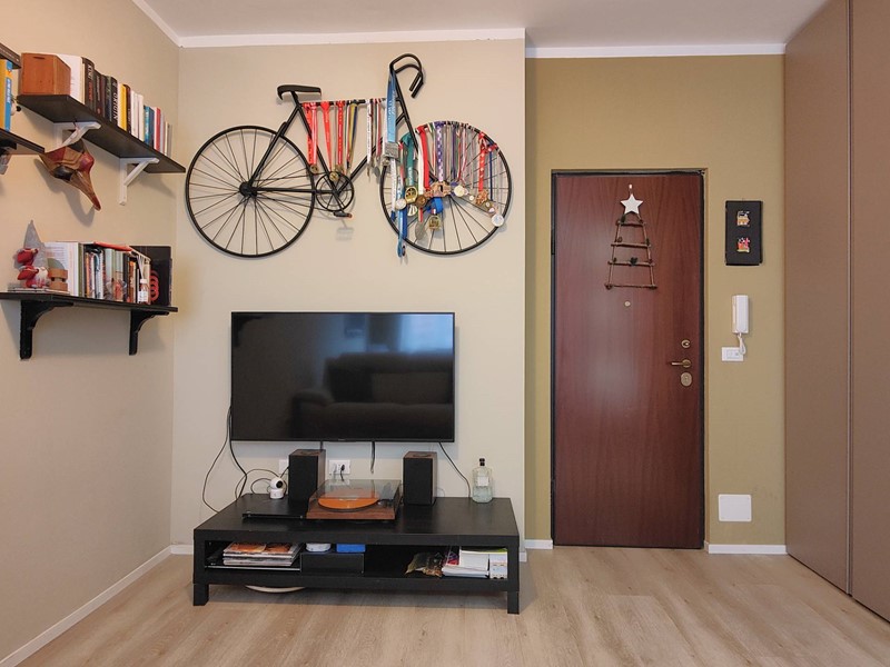 Lingresso si apre su una zona giorno di ambiente unico, ben distribuita e funzionale. Un disimpegno conduce alla zona notte, dove si trovano il bagno, un pratico ripostiglio e l'ampia camera da letto.