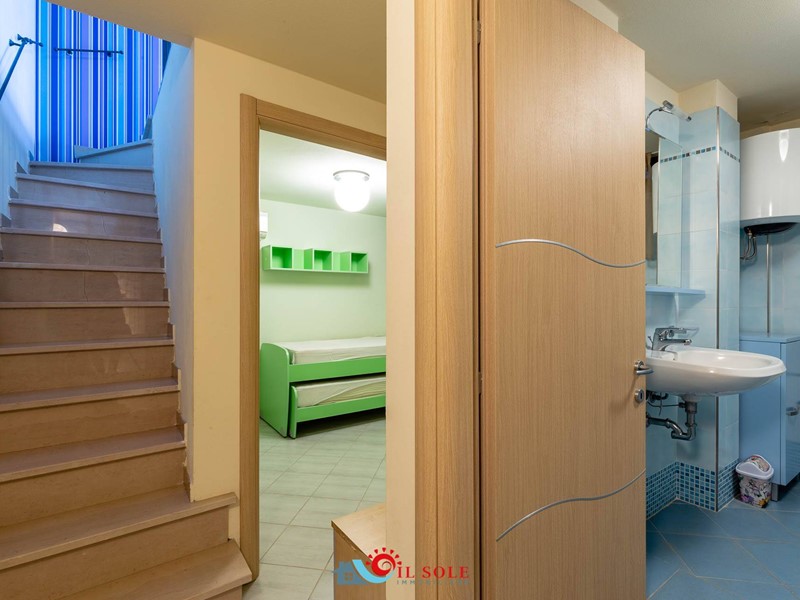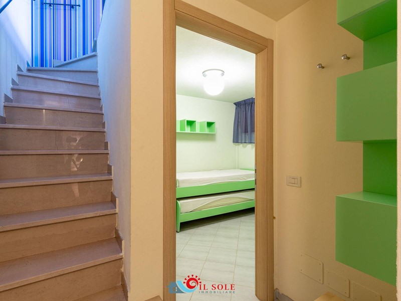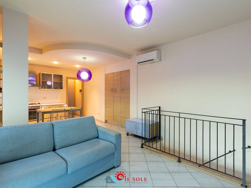 Il trilocale si sviluppa su due livelli : al primo livello troviamo soggiorno con cucina a vista, da cui è possibile accedere direttamente al giardino e primo bagno; Al livello inferiore una camera matrimoniale, una cameretta e secondo bagno.