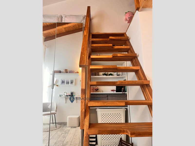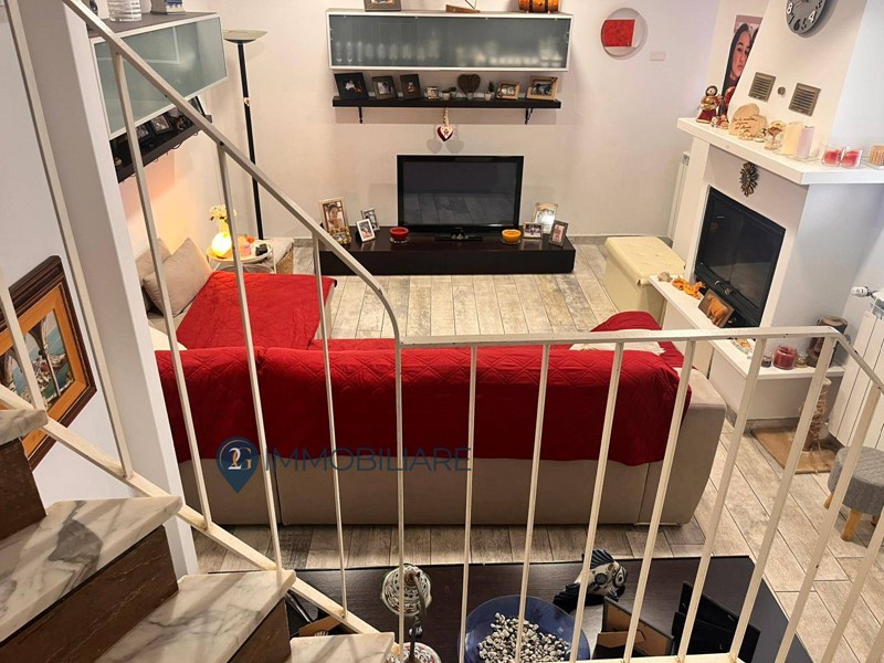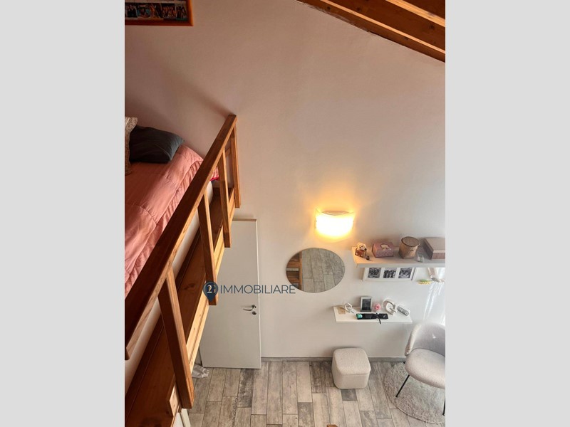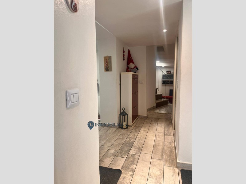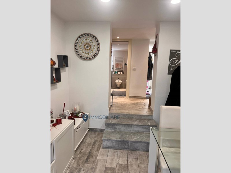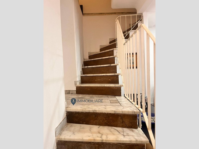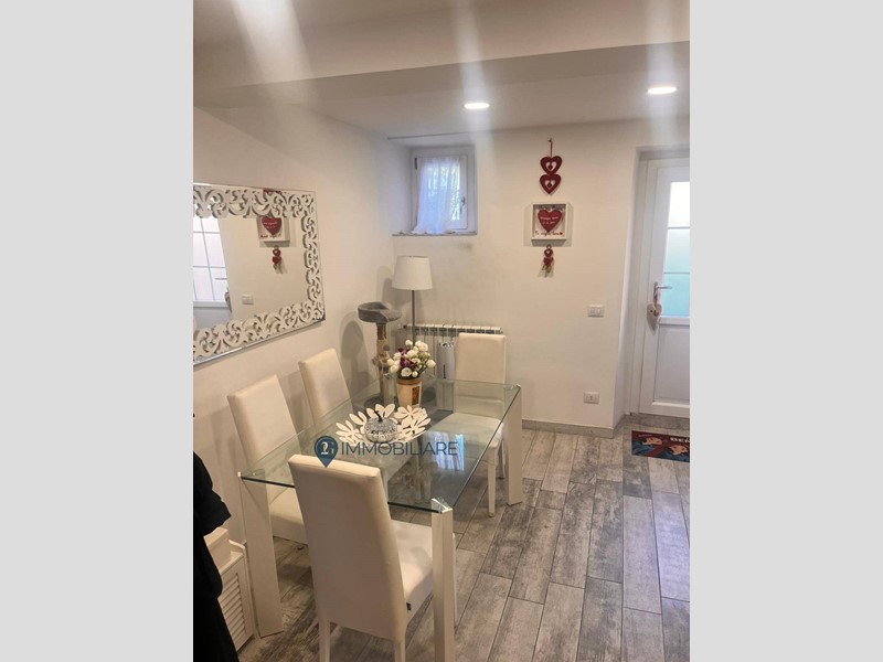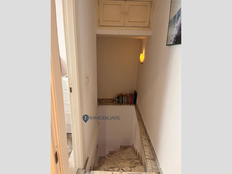 La proprietà si estende su due livelli: entrata privata su disimpegno, cucina con porta finestra con accesso sul porticato e seconda finestra, sala da pranzo ( o eventualmente terza camera ) con seconda porta di entrata e finestra , salone con camino e doppia finestra, bagno con doccia .