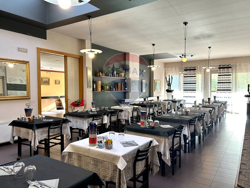 Lingresso è valorizzato da una zona bar di circa 40 mq, mentre la cucina, ampia, funzionale e già attrezzata, si sviluppa su circa 50 mq. Completano la parte interna una serie di servizi igienici con antibagno e realizzati nel rispetto della normativa igienico-sanitaria.