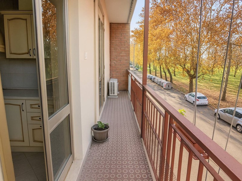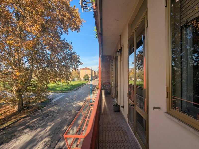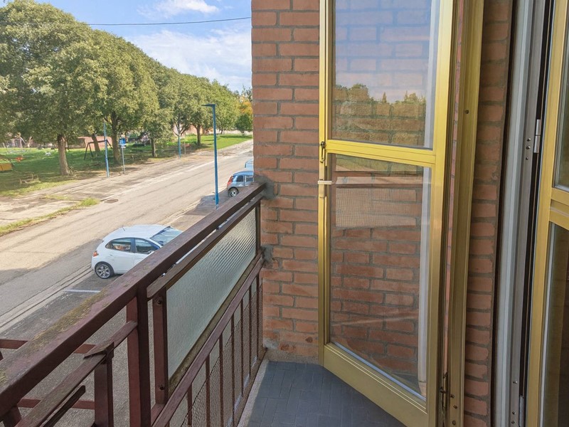 Dalla cucina e dal soggiorno è possibile accedere al balcone principale, di dimensioni generose e perfetto per momenti di relax all'aperto.