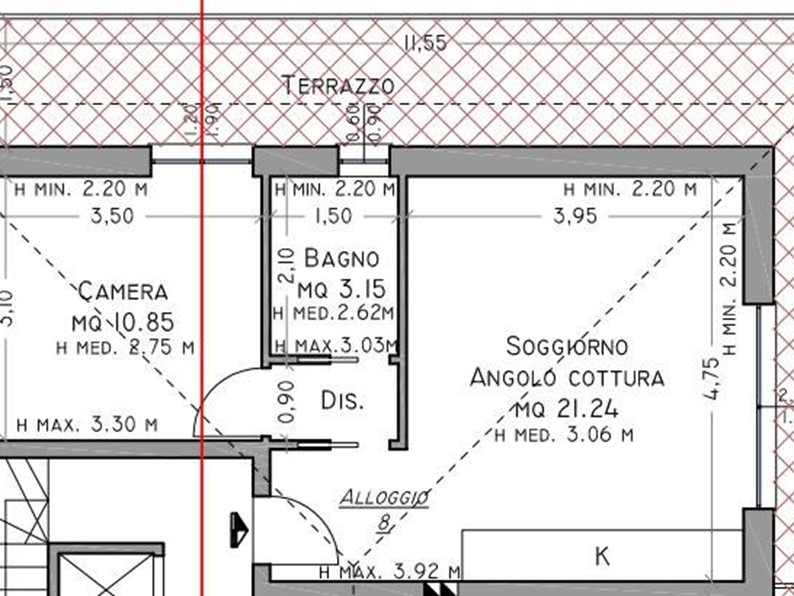 E' composto da: soggiorno con angolo cottura, camera, bagno e terrazzo panoramico vista mare.