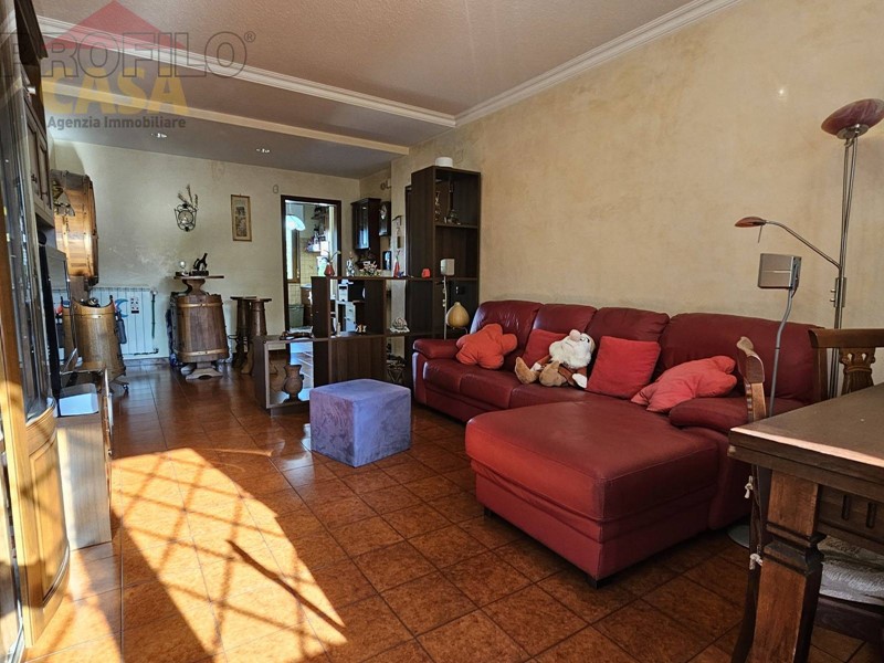 Limmobile è così composto: ingresso, ampio salone, cucina abitabile con uscita su balcone panoramico, disimpegno con armadi a muro, camera matrimoniale e ampia cameretta (entrambe con accesso a un secondo balcone), ulteriore ampia camera e doppi servizi con doccia. Completano la proprietà una cantina e posto auto coperto doppio di 24 mq al piano seminterrato. È stato recentemente ristrutturato con infissi nuovi, grate di sicurezza e zanzariere già installate. Possibilità di acquistare parte del mobilio.