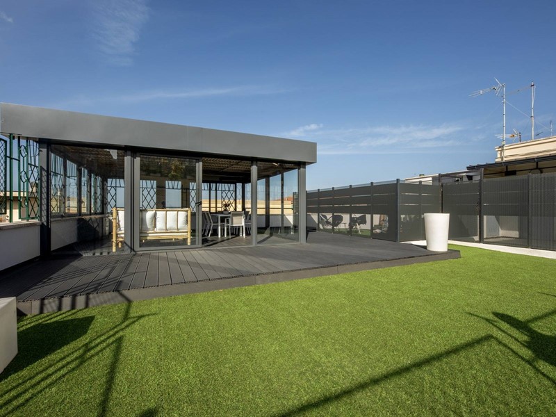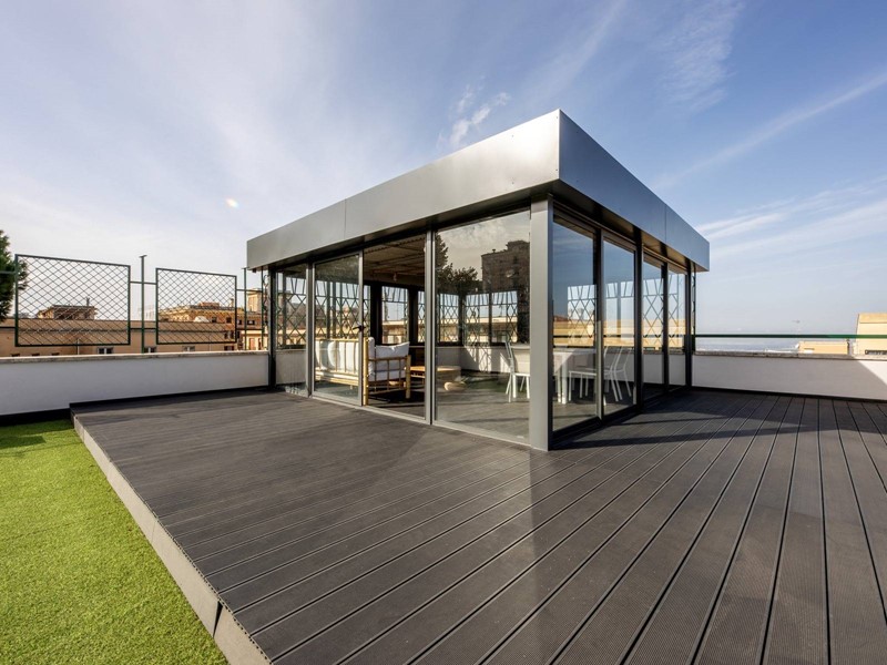 Nel rinomato ed esclusivo contesto del Centro Storico di Frascati, proponiamo la vendita di un prestigioso appartamento recentemente e totalmente ristrutturato, con ottime finiture e materiali di pregio e di alta qualità, con ampio terrazzo di proprietà esclusiva con splendida vista panoramica su Roma, munito di elegante e comodo ambiente vetrato e locale tecnico. Completa la proprietà un comodo posto auto di proprietà esclusiva sito nel cortile condominiale delimitato da un cancello automatico, per garantire la massima tranquillità e riservatezza, oltre alla possibilità di acquistare, con cifra a parte, anche un box auto di pertinenza esclusiva sito nello stesso cortile condominiale, contornato dalla cornice di un palazzo storico. L'appartamento è molto luminoso ad ogni ora del giorno grazie alla sua posizione privilegiata e alla sua esposizione sud-est, ed è composto da un ampio ed elegante salone doppio completo di cucina a vista, due camere da letto, doppi servizi e ripostiglio, oltre a comodi disimpegni, il tutto completamente e totalmente ristrutturato con accurata e qualitativa attenzione ai dettagli, primo fra tutti la presenza dell'impianto di riscaldamento e raffreddamento a pavimento, oltre a molte altre particolarità che rendono l'immobile unico nel suo genere. Completano la proprietà un terrazzo di proprietà esclusiva di 150 mq con stupenda vista panoramica su Roma, munito di splendido e comodo ambiente vetrato e comodo locale tecnico. A pochi passi troviamo scuole, parchi pubblici, uffici postali, banche, uffici della Pubblica Amministrazione, centri commerciali, supermercati e negozi di ogni genere, garantendo centralità e funzionalità e al tempo stesso la massima privacy e comodità.
