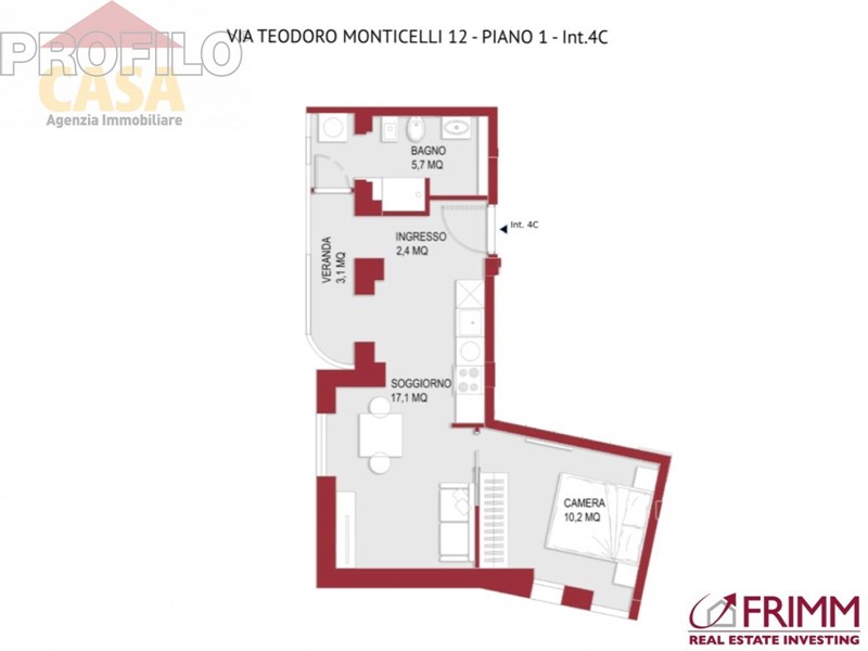 L'immobile è composto da : ingresso sala con angolo cottura veranda - camera da letto ed un elegante bagno.