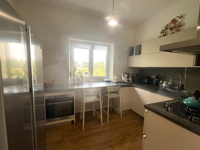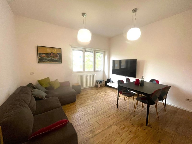 L'appartamento, di circa 100 mq, è stato completamente ristrutturato ed è composto da ingresso, soggiorno, cucina abitabile, due camere, due bagni, ripostiglio e soppalchi comunicanti, due balconi. Completa la proprietà una cantina ampia e ristrutturata.