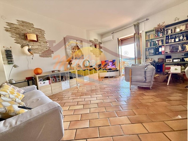 L'appartamento è ubicato al quinto e ultimo piano, con ascensore e telecamere interne, gode di vista panoramica ed è cosi composto: salone ampio e cucina abitabile con lavanderia/dispensa, due camere da letto, bagno, un ripostiglio e una cabina armadio