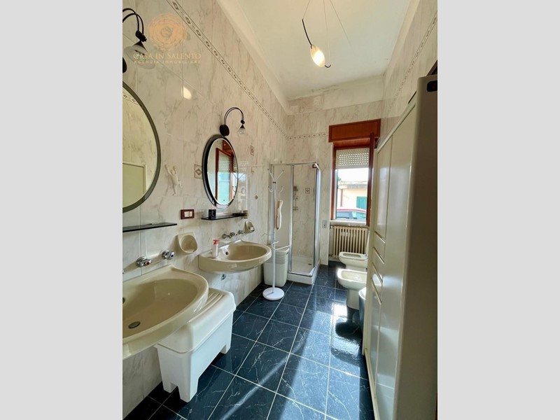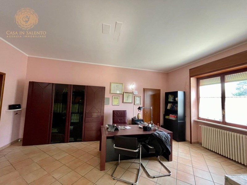 In pieno centro a Gagliano del Capo, proponiamo in vendita un’elegante soluzione indipendente disposta su tre livelli, caratterizzata da ambienti ampi, luminosi e da una parziale ristrutturazione effettuata nel 2016. La proprietà vanta un esteso giardino, in parte edificabile, di circa 800 mq, ideale per momenti di relax e attività all’aperto, oltre a un comodo garage di circa 90 mq con tettoia e deposito. Il piano terra di circa 230 mq, è composto da un ingresso che si apre direttamente in un ambiente luminoso che introduce alla zona giorno, composta da un ampio soggiorno con grandi vetrate, che garantiscono eccellente illuminazione naturale, prosegue per una comoda sala pranzo con angolo cottura e bagno. La zona notte comprende tre camere da letto, uno studio, un bagno, oltre a disimpegno e ripostiglio, ben distribuiti e funzionali. Il primo piano, di circa 205 mq, è raggiungibile sia tramite una scala interna che tramite una scala esterna, ed accoglie un grande living, una sala da pranzo e un cucinotto. Anche questo livello offre tre camere da letto, uno studio, una lavanderia, due bagni, disimpegno e una terrazza a livello, perfetta per essere vissuta durante la bella stagione. Alla cantina, di circa 20 mq, si accede da una comoda scala esterna.