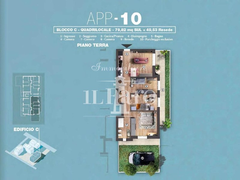 L'intervento prevede la realizzazione di 52 appartamenti in tre blocchi, tutti dotati di un POSTO AUTO di proprietà oppure volendo anche di garage di varie metrature fino ad arrivare a 54 mq ( acquistabili separatamente).