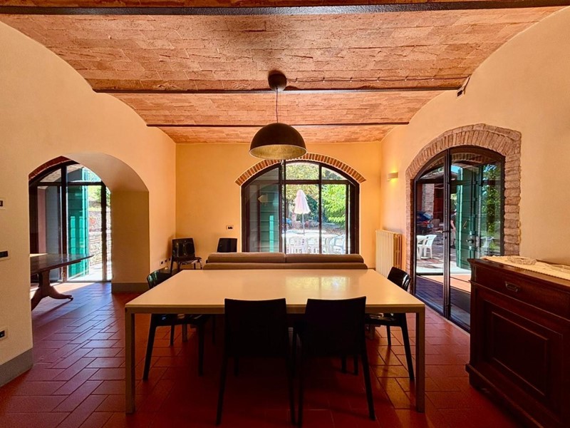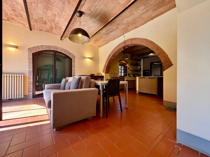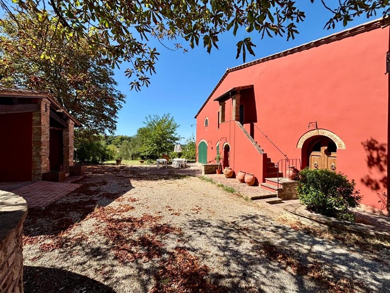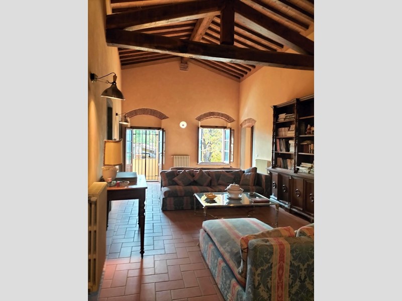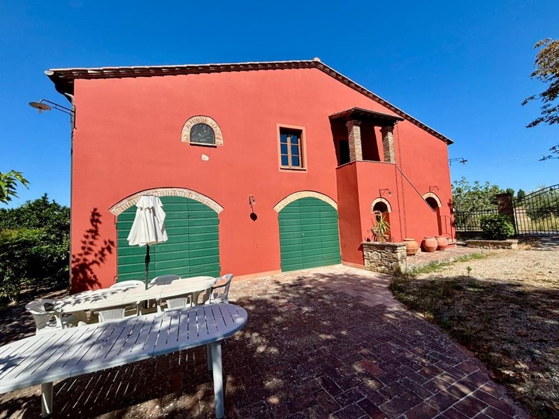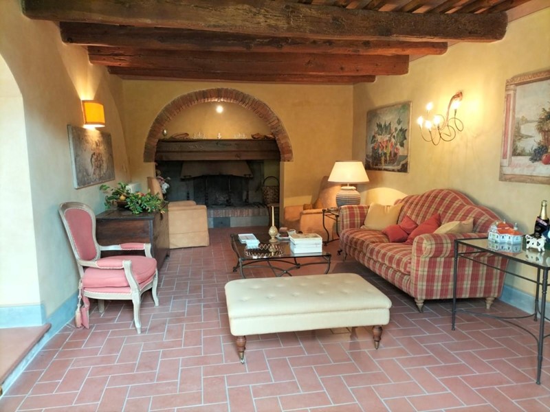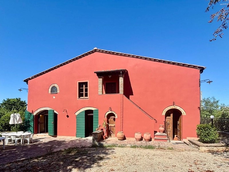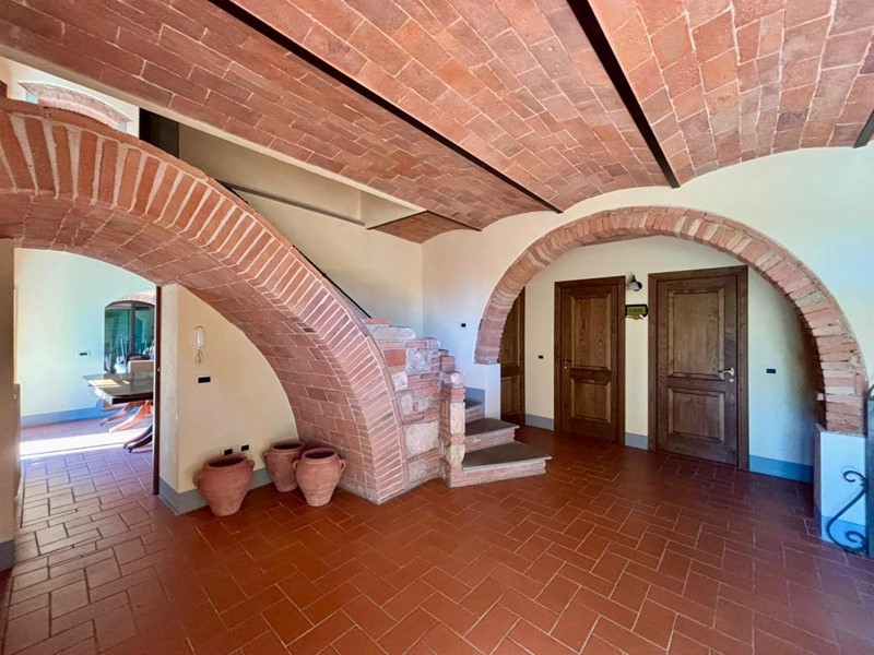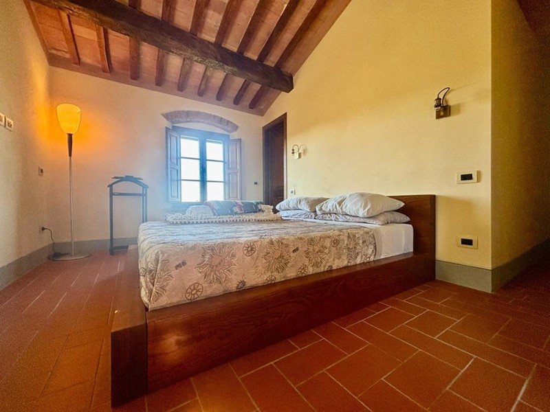 Sulle colline più belle della Toscana, si trova in tutta la sua imponenza questo favoloso casale di lusso recentemente restaurato. Questo incantevole angolo di paradiso, si immerge in oltre due ettari di terreno di proprietà, destinati a giardino, con oltre settanta alberi da frutto e di agrumi in circa trenta varietà e uliveta, oltre a cipressi, castagni selvatici e molte altre piante. Questo splendido casale in tipico stile toscano con archi di mattoni a vista, si distingue per il fascino senza tempo dell’architettura rurale toscana e per la qualità dei suoi ambienti, sia interni che esterni. La proprietà sorge sulle mura di un edificio storico nato come convento intorno l'anno cinquecento. Durante l'accurata ristrutturazione, compiuta preservando intatte le originali finiture dell'epoca e i preziosi materiali antichi nel pieno rispetto della lunga tradizione toscana, è stata ritrovata un'acquasantiera nel salone al primo piano oggi divenuta base della fontana in giardino. Ideale per chiunque sogni di rivivere l'atmossfera di un tempo andato, senza rinunciare però ai più moderni comfort. Da qualsiasi stanza la vista si apre sulla verdeggiante campagna toscana a contemplare uno scenario idilliaco in cui apprezzare la tranquillità più assoluta, tra meravigliose distese di girasoli e immensi campi di grano. L’incantevole proprietà con il suo bellissimo parco privato, misura 310 mq e si estende su due livelli, offrendo ambienti ampi, luminosi e di rappresentanza. Al piano terra si sviluppa un'ampia e strepitosa zona giorno dove si trova la splendida cucina abitabile con penisola e caminetto oltre a sala da pranzo in ambiente open space, un elegante salone con un secondo imponente camino in tipico stile toscano con larghezza di oltre cinque metri , dove trascorrere momenti conviviali in piacevole compagnia. I bellissimi portoni in ferro battuto lavorato a mano danno accesso diretto sul magnifico giardino offrendo l'opportunità di ammirare il meraviglioso panorama circostante. Deliziosi soffitti con travi a vista e soluzioni a volte, impreziosiscono la proprietà ripercorrendo un passato storico. Completa il piano terra l’ingresso con bagno, guardaroba, locale tecnico ed una bellissima scala in mattoni e pietre facciavista e pietra serena che porta al piano superiore dove si trova il secondo salone, qui spicca un grande e bellissimo architrave in massello nella parte centrale del tetto. Da questo salone si accede ad un piccolo terrazzo con scala in pietra che da un accesso diretto al giardino ed è perfetto per ammirare una vista sopraelevata e suggestiva sul panorama che offre questa splendida proprietà. La zona notte, infine, si sviluppa attraverso lo studio arredato con mobili su misura realizzati da artigiano di zona e due bellissime camere da letto, una delle quali concabina armadi su misura, tutte con toilette en-suite. I pavimenti in cotto e le deliziose travi in legno di castagno ben si sposano con il mobilio tradizionale toscano, Il complesso si compone della villa principale e di altri due annessi, un bellissimo forno in pietra di 25 mq con copertura