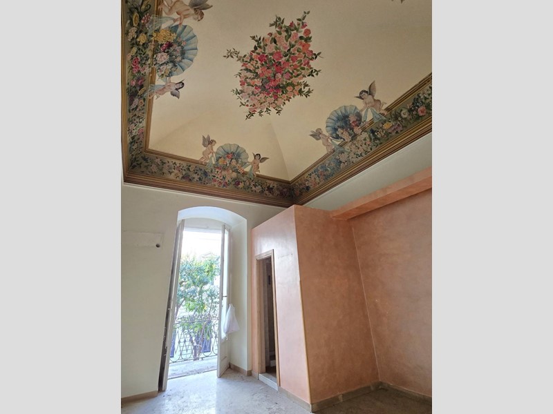 Gli ambienti interni si sviluppano attraverso più camere di ampia metratura, alcune con servizi riconducibili alla precedente configurazione ricettiva. I volumi sono importanti, impreziositi da volte a botte affrescate con altezze superiori ai 4 metri e da dettagli architettonici originali che preservano il carattere storico della proprietà, rendendola ideale per un progetto che sappia coniugare eleganza depoca e funzionalità contemporanea.