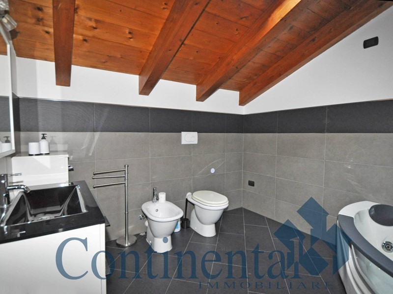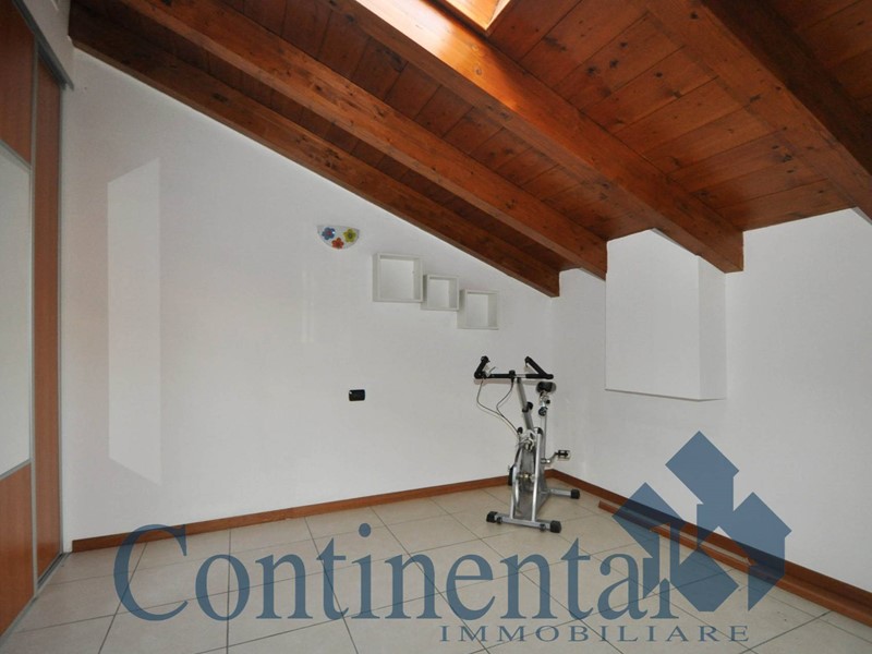 A Boltiere in quartiere residenziale con parco giochi e a poca distanza da tutti i servizi ed a 500 metri dall'ospedale di Zingonia, appartamento posto al primo ed ultimo piano inserito in palazzina realizzata nel 2007 in ottimo stato di manutenzione. L'unità abitativa di sviluppa su due livelli ed è internamente così distribuita: soggiorno con balcone, angolo di cottura, disimpegno, una camera da letto e bagno. Dalla zona soggiorno parte la scala interna che conduce al caratteristico piano sottotetto che accoglie una camera da letto, una sala hobby e bagno con vasca idromassaggio. Riscaldamento autonomo a metano con caldaia e termosifoni, acqua calda solare termico condominiale, climatizzatore e impianto di allarme. Completa la proprietà spazioso box auto di 22 mq al piano sottostrada.