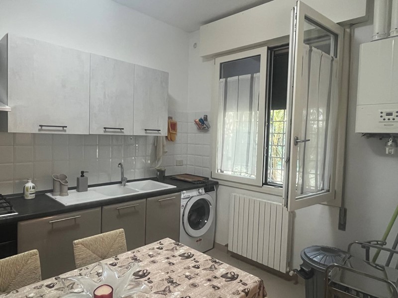 L'appartamento è composto da: ingresso, cucina abitabile a vista su soggiorno, due camere da letto e bagno con doccia finestrato.