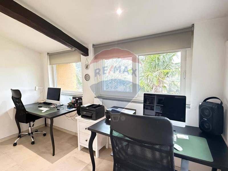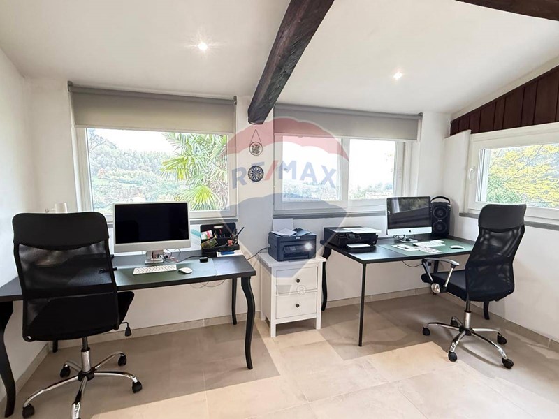 Al piano terra, un ingresso curato introduce nellampio soggiorno, reso arioso dalle ampie aperture che incorniciano la natura circostante. La cucina a vista si integra con gli spazi in modo armonico, mentre la terrazza coperta, oggi adibita a studio, permette di lavorare o rilassarsi godendo di una vista che cambia con le stagioni: dai verdi intensi della primavera, al dorato dellestate, fino ai rossi e aranci dellautunno. Completano il livello una sala da pranzo, disimpegno e bagno con doccia.