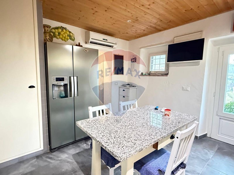 Le dotazioni tecniche sono moderne ed efficienti: riscaldamento con camino a legna e caldaia a pellet, impianto solare termico e fotovoltaico, infissi in PVC effetto legno bianco.