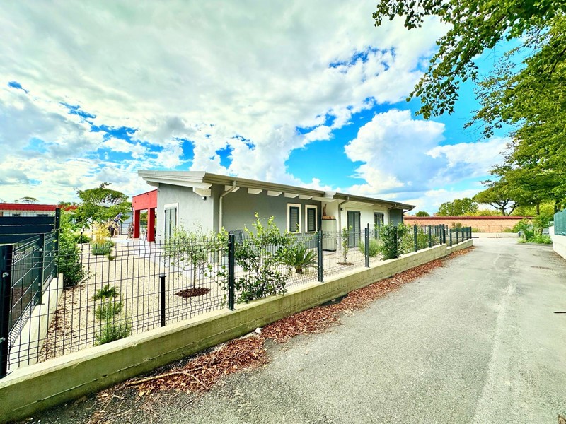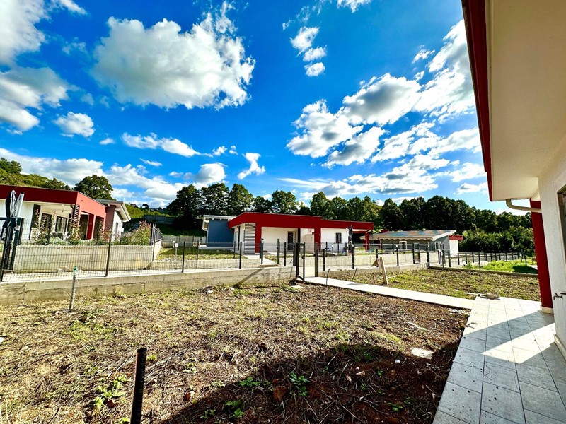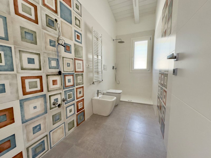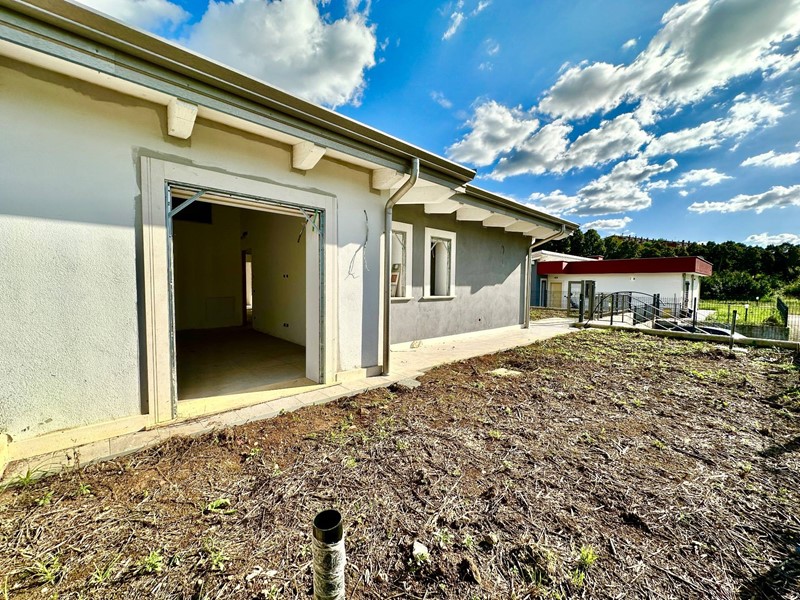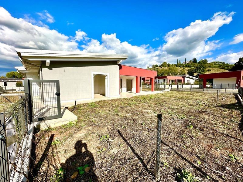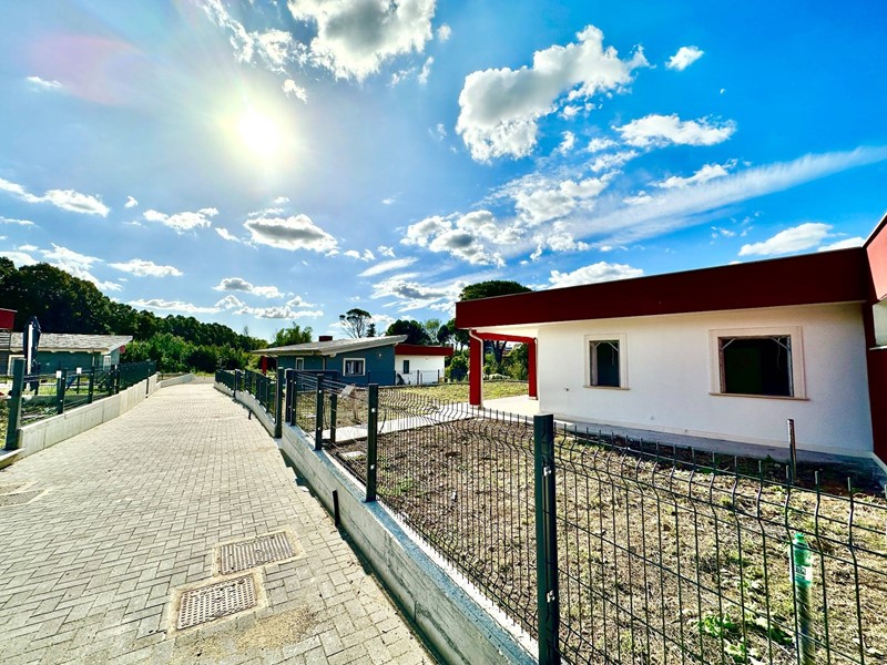 Villa bifamiliare di 140 mq su un unico livello con portico verandabile attrezzato per un con angolo cottura esterno, un ampio salone, una cucina abitabile, 3 camere di dimensioni matrimoniali, 2 bagni di cui uno in camera matrimoniale, cabina armadio e giardino privato di 400 mq e 2 posti auto.