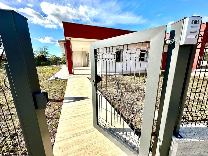 Le finestre sono in pvc con vetrocamera, hanno le inferriate e la predisposizioni per gli oscuranti elettrici. Le porte sono in legno e alcune sono battenti ed altre scorrevoli, il soffitto della zona notte completamente in legno.