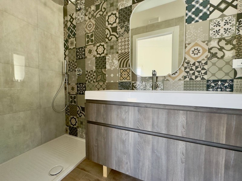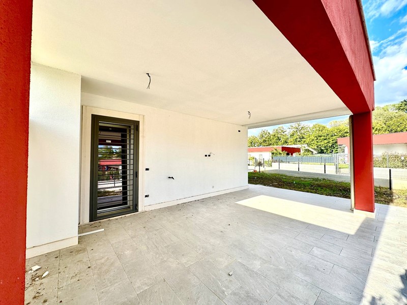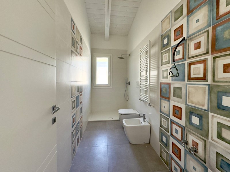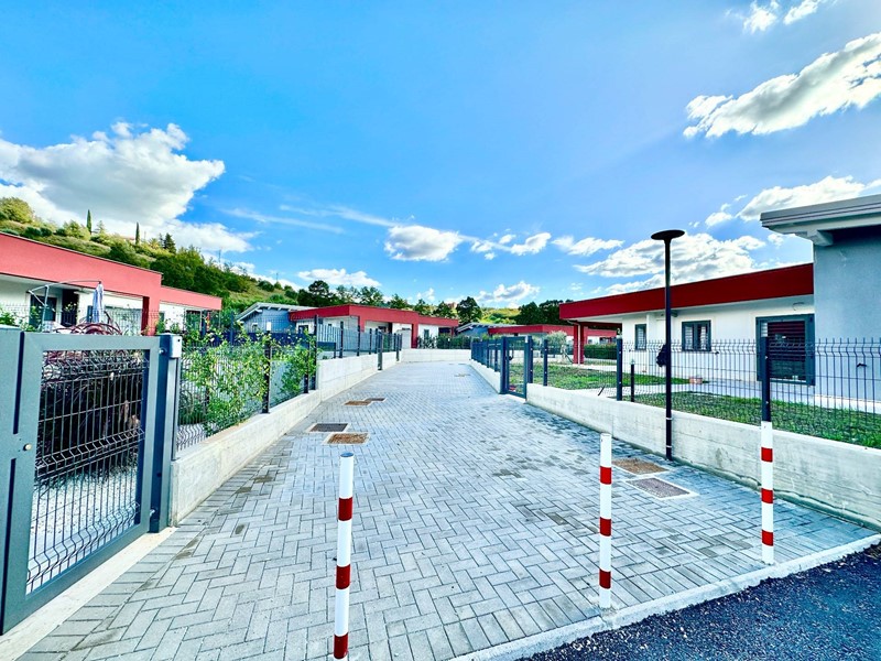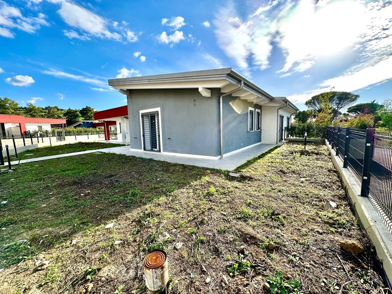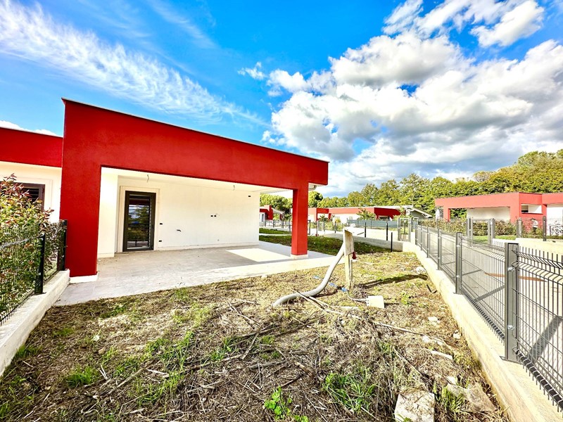 Villa bifamiliare di 140 mq su un unico livello con portico verandabile attrezzato per un con angolo cottura esterno, un ampio salone, una cucina abitabile, 3 camere di dimensioni matrimoniali, 2 bagni di cui uno in camera matrimoniale, cabina armadio e giardino privato di 400 mq.