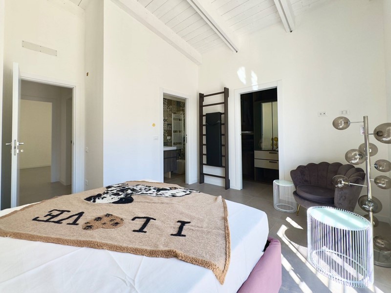 Lingresso si apre sulla zona living di 40 mq con cucina abitabile e una camera da letto con la predisposizione per un servizio ideale come ambiente di lavoro o per creare una camera indipendente per la privacy degli ospiti; la zona notte ha un bagno principale, 2 camere da letto ci cui una di circa 20 mq e l'altra con all'interno la sua cabina armadio e bagno privato.