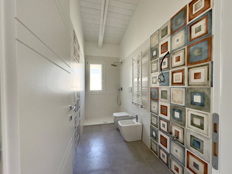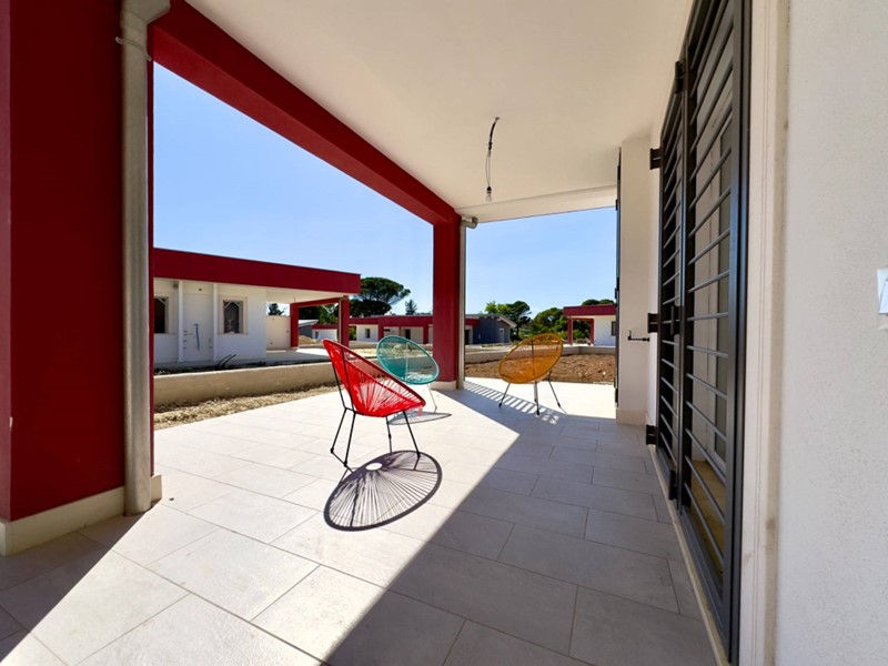 Villa bifamiliare di 140 mq su un unico livello con portico verandabile attrezzato per un con angolo cottura esterno, un ampio salone, una cucina abitabile, 3 camere di dimensioni matrimoniali, 2 bagni di cui uno in camera matrimoniale, cabina armadio e giardino privato di 400 mq.