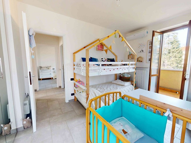 L'entrata dal terrazzino d'ingresso ci accoglie nel CONFORTEVOLE SOGGIORNO con CUCINA A VISTA dotato di doppia fruibilità alla BALCONATA arricchita da VISUALE DI AMPIO RESPIRO esposta a sud; il disimpegno ritaglia poi la riservata zona notte con armonioso affaccio sul verde circostante dove troviamo le DUE INTROVABILI CAMERE MATRIMONIALI, entrambe con balcone privato, e l'ELEGANTE BAGNO completo di vasca e doccia.