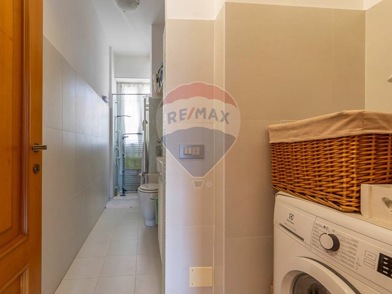 Labitazione si compone di un ingresso con disimpegno, un soggiorno doppio con balcone, una cucina con cucinotto, tre camere matrimoniali e due bagni, di cui uno dotato di lavanderia. Completano la proprietà un ripostiglio in quota, una cantina e un solaio.
