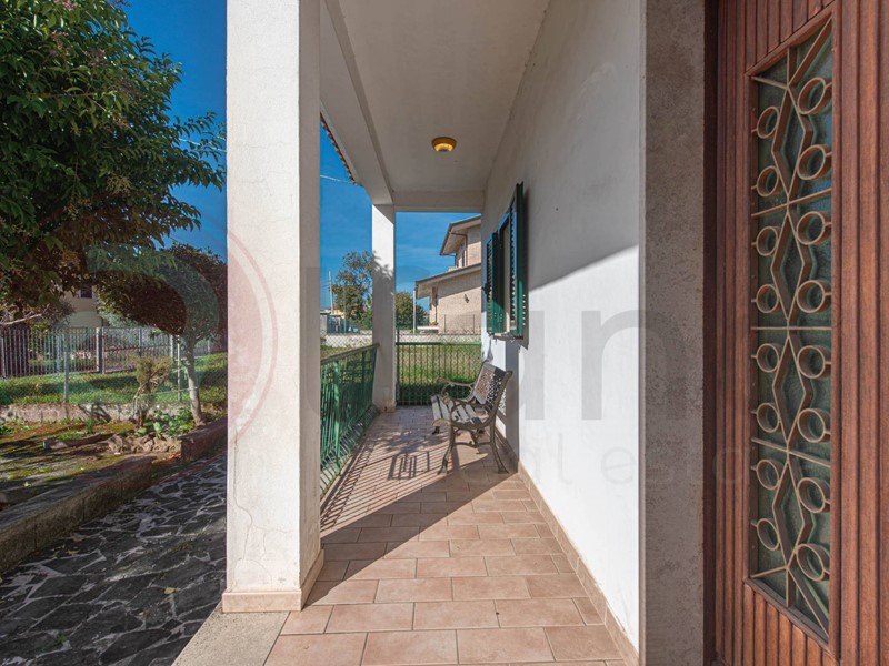 Allesterno, la casa è completamente recintata e valorizzata da un bel portico con affaccio sul giardino, in parte pavimentato e in parte ornamentale, un piccolo angolo di pace dove vivere il piacere dellaria aperta in ogni stagione.