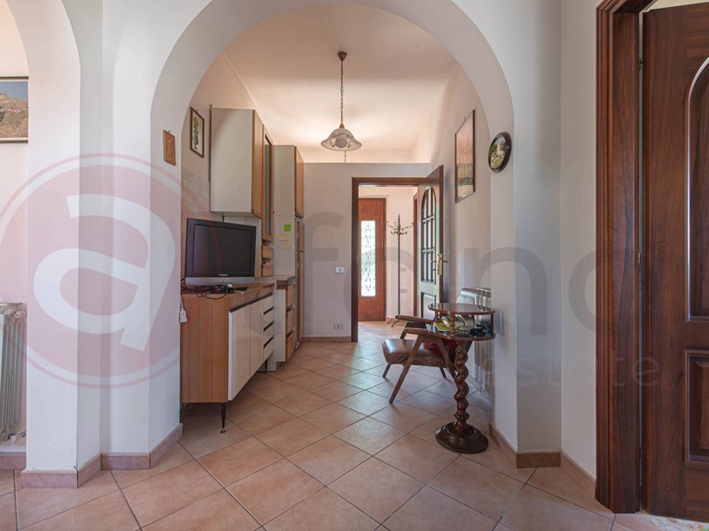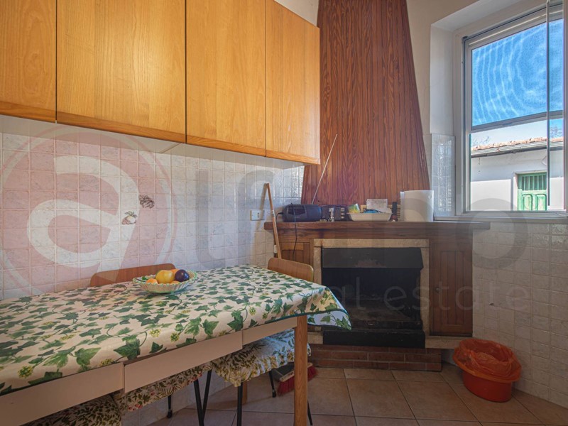 Un ampio ingresso luminoso accoglie e conduce verso una cucina con camino, accanto, un soggiorno spazioso regala luce e armonia, ideale per momenti di relax e convivialità.