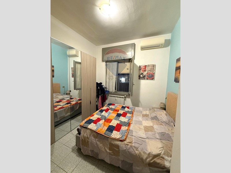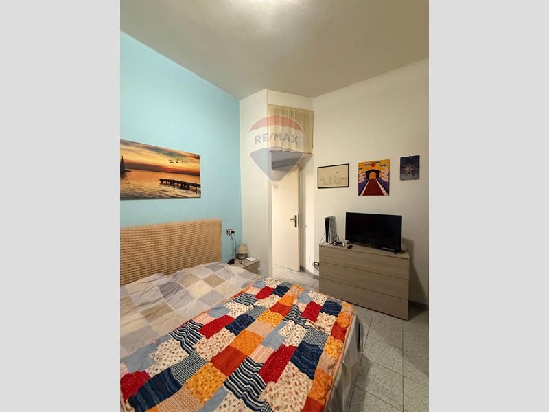 La zona notte ospita una camera matrimoniale spaziosa, mentre il bagno finestrato è completo di box doccia.